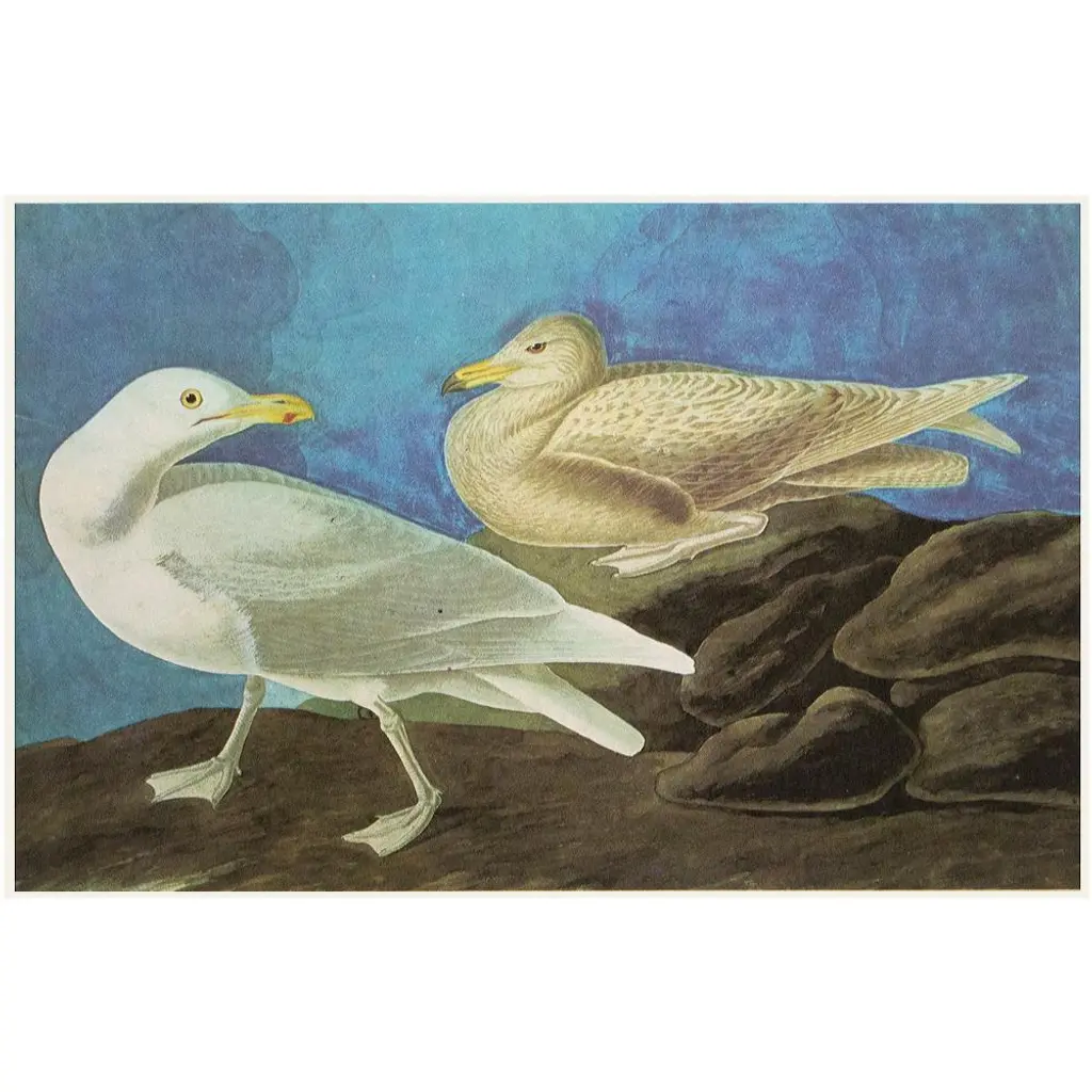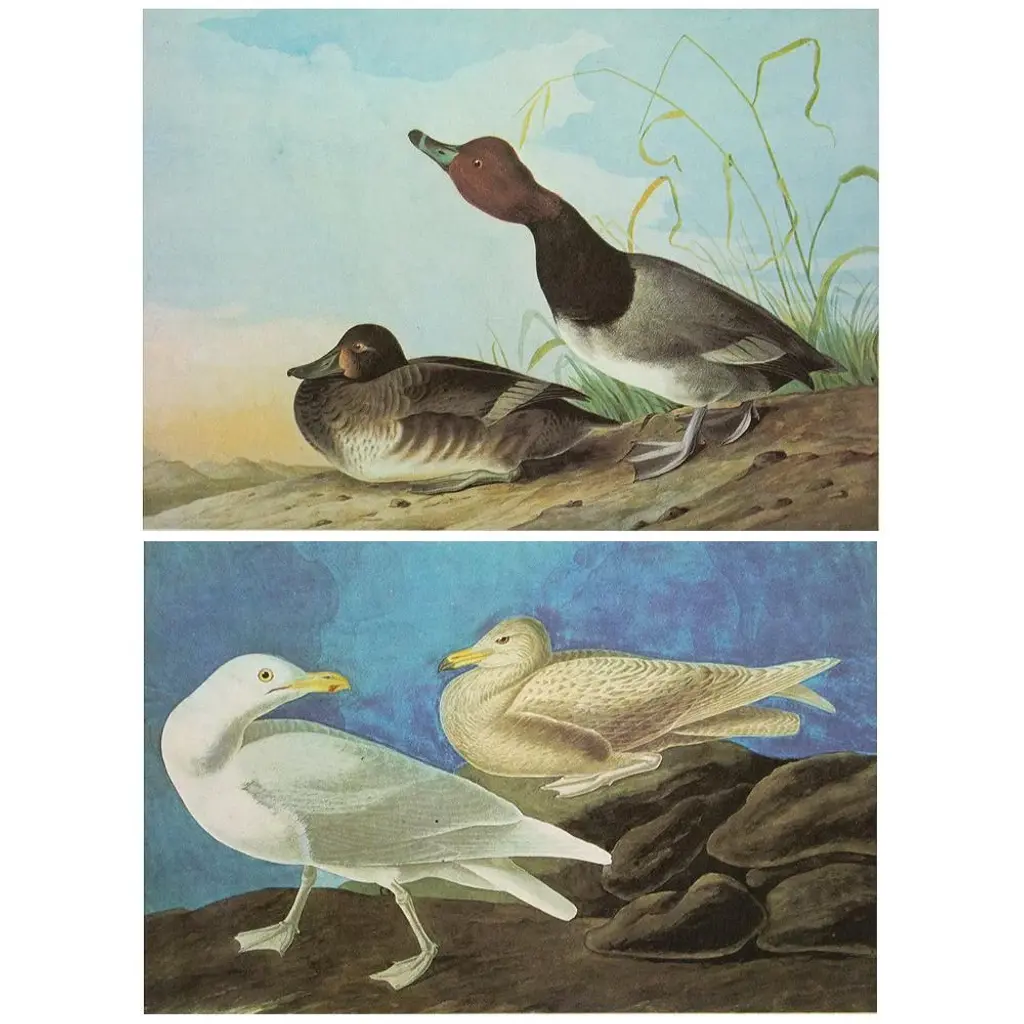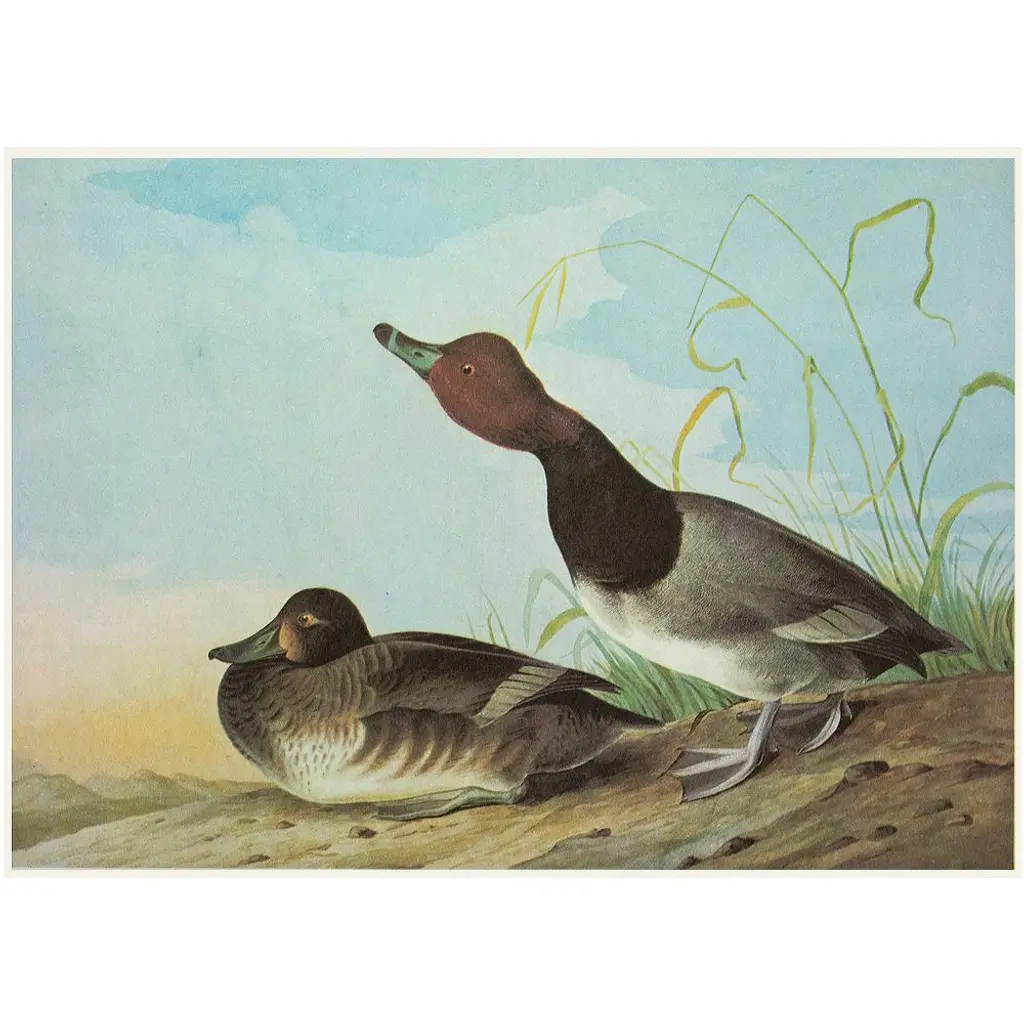 1966 Vintage Cottage Print "Red-Headed Duck And Glaucous Gull" After John James Audubon