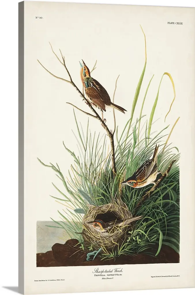 1966 Vintage Cottage Print "Sharp-Tailed Finch" After John James Audubon