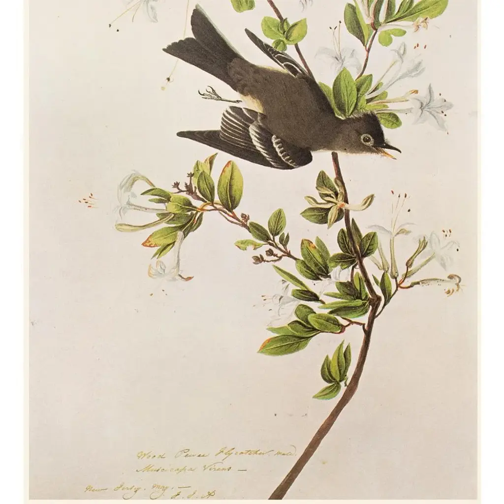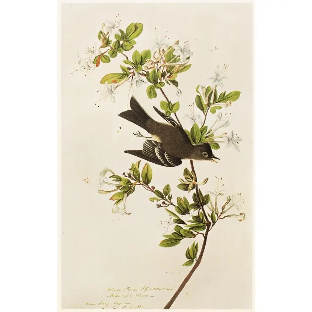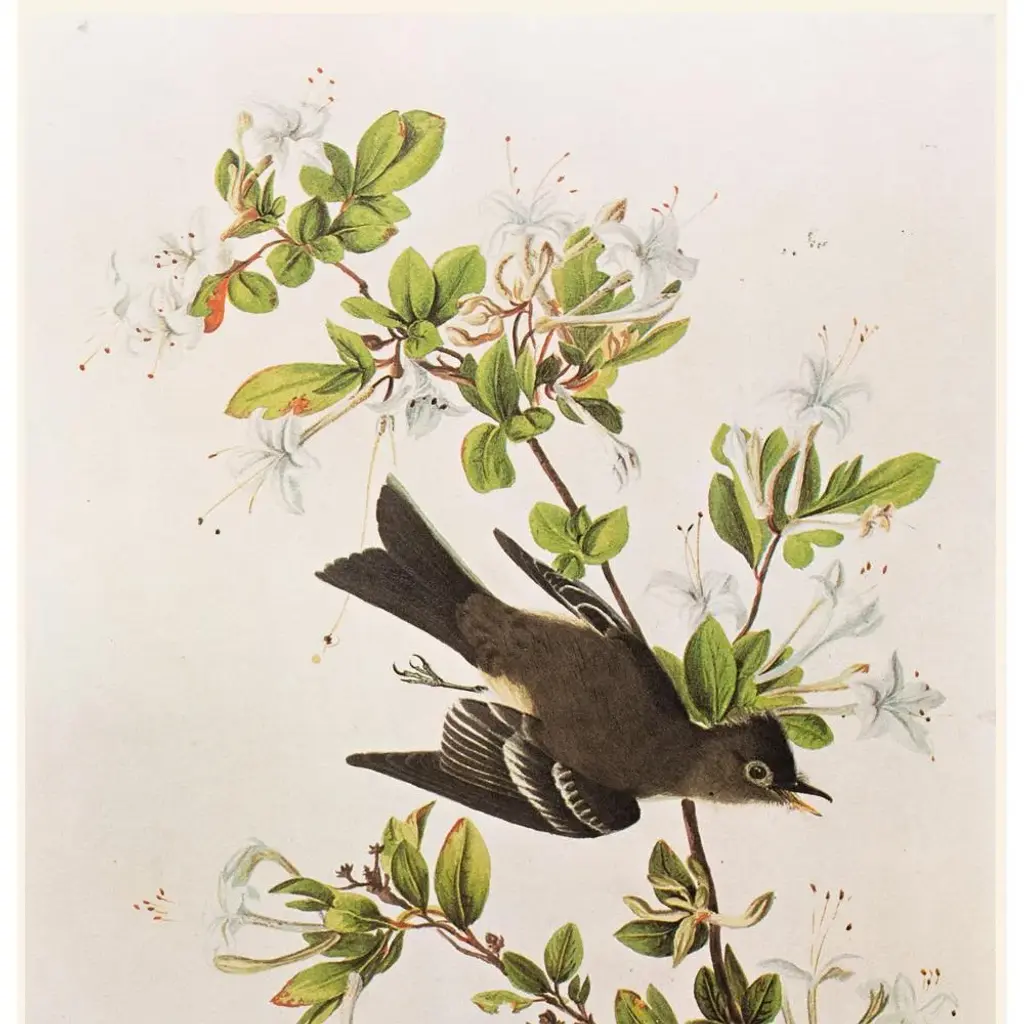 1966 Vintage Cottage Print "Wood Peewee Flycatcher" After John James Audubon
