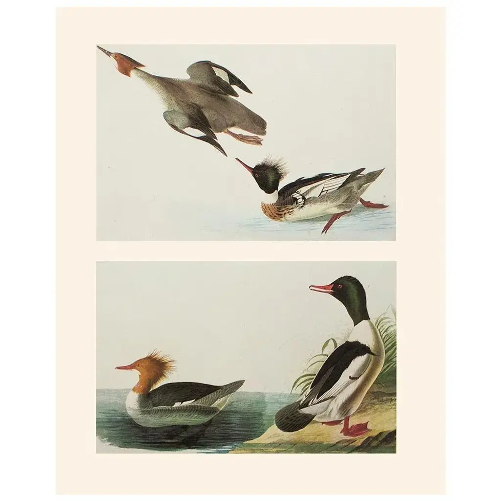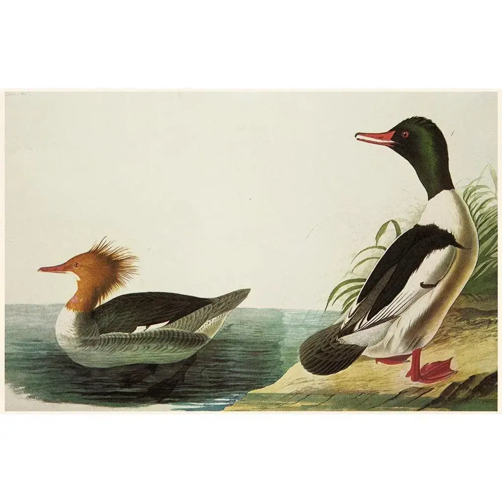 A stunning vintage American Classical, English Traditional, Farmhouse, Nautical or Cottage Style reproduction of the original lithographic prints of Red-Breasted Merganser & Goosander After John James Audubon. Comes from The Birds of America book by Audubon, published in the U.S. in 1966. Very detailed. Excellent condition - never framed.