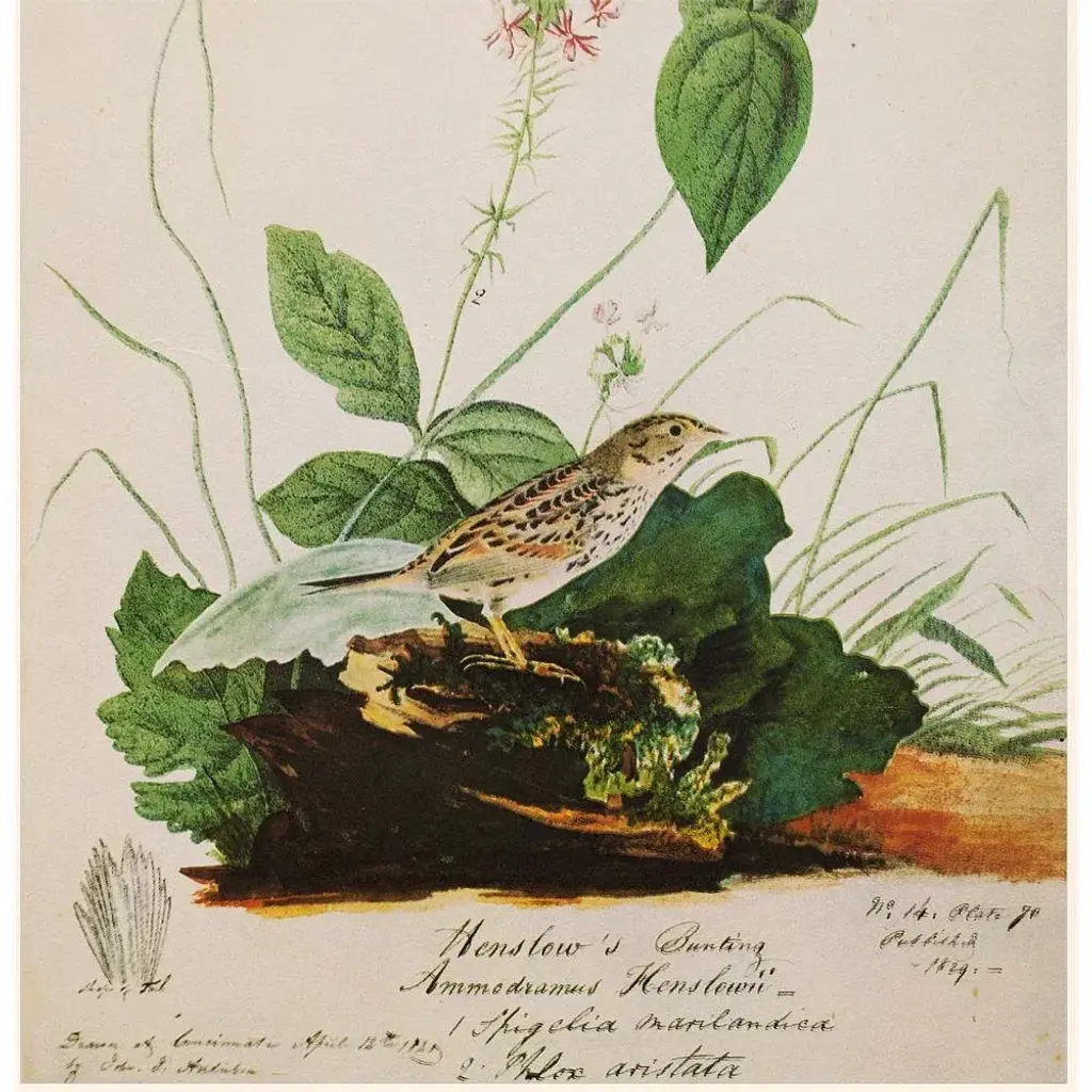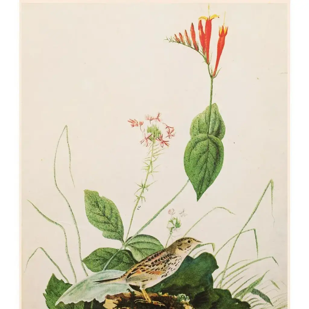 1966 Vintage Farmhouse Cottage Print "Henslow's Sparrow" After John James Audubon