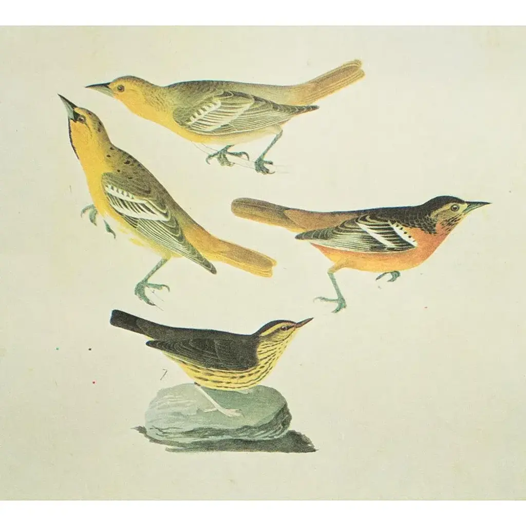 1966 Vintage Farmhouse Cottage Print "Warblers" After John James Audubon