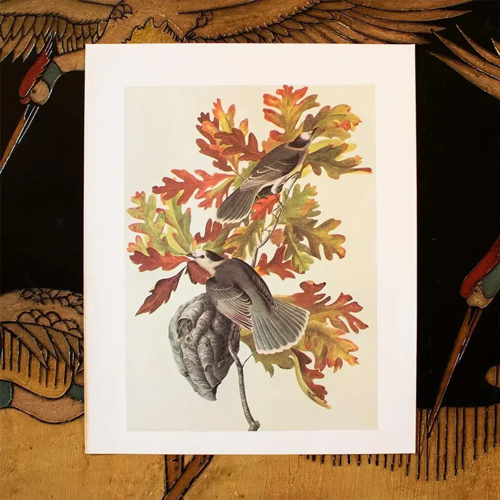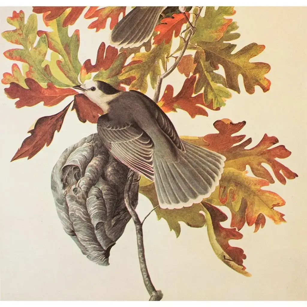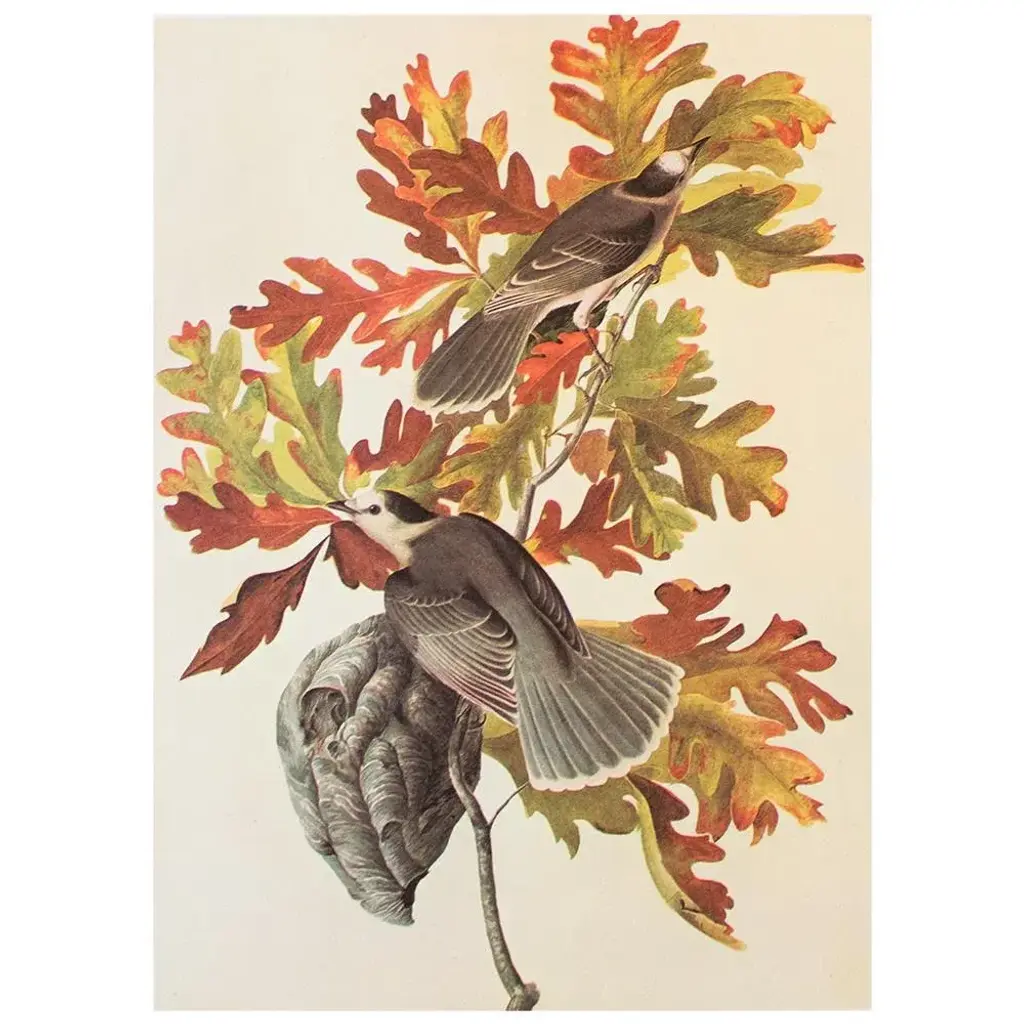 A stunning large vintage American Classical, Traditional, Farmhouse or Cottage Style reproduction of the original lithographic print of Canada Jay After John James Audubon. Comes from The Birds of America book by Audubon, published in the U.S. in 1966. Warm colors, very detailed. Excellent condition - minor edge wear, never framed. Overall: 10.25" W x 13.25" H