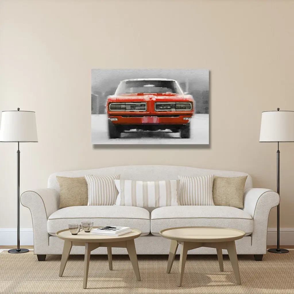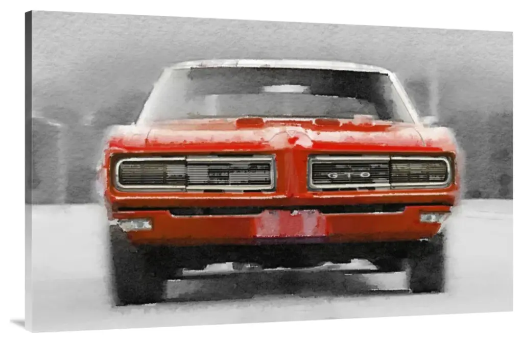 "1968 Pontiac Gto Front Watercolor" Fine Art Print