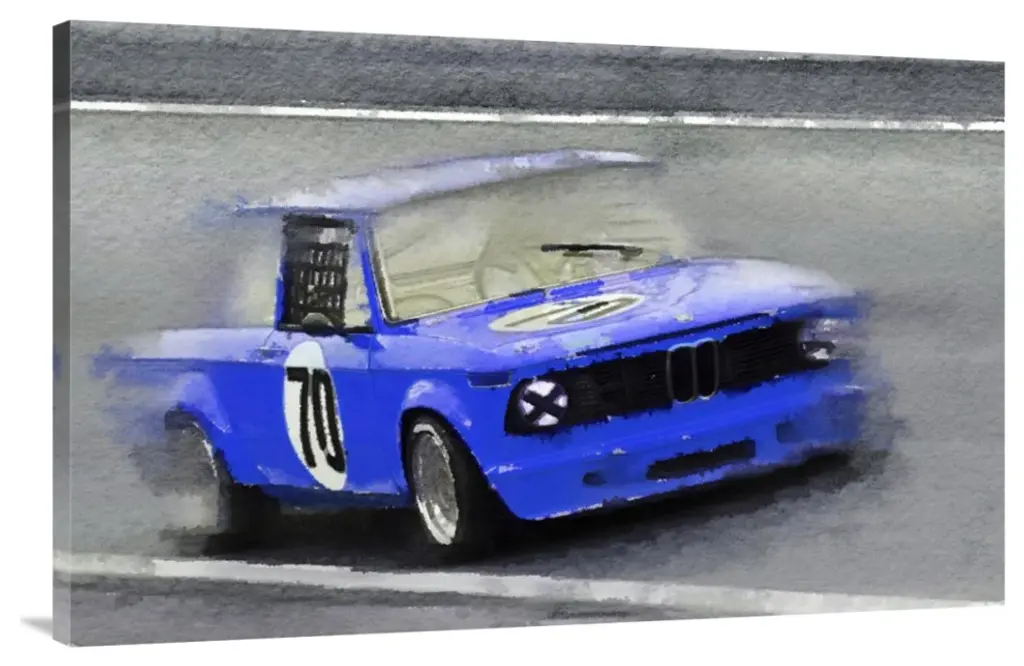 "1969 Bmw 2002 Racing Watercolor" Fine Art Print