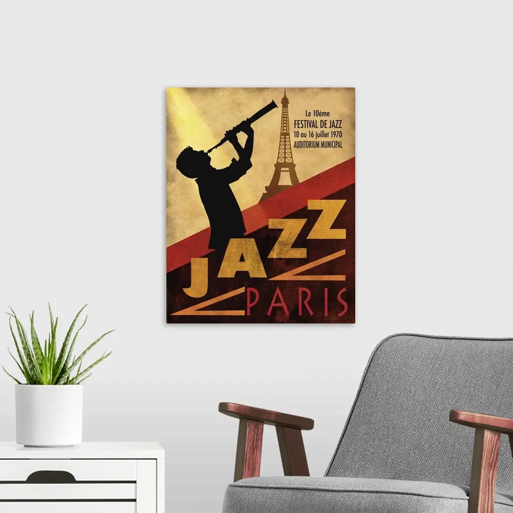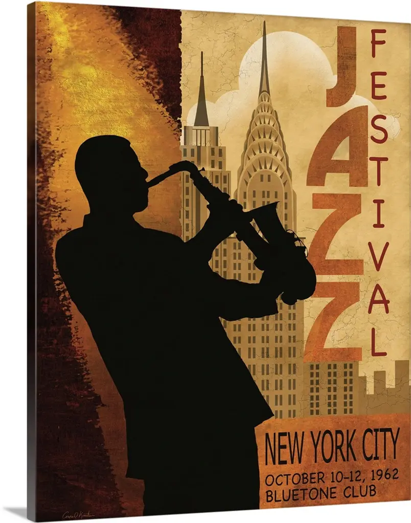 Contemporary artwork of a music poster centered around a jazz music theme.