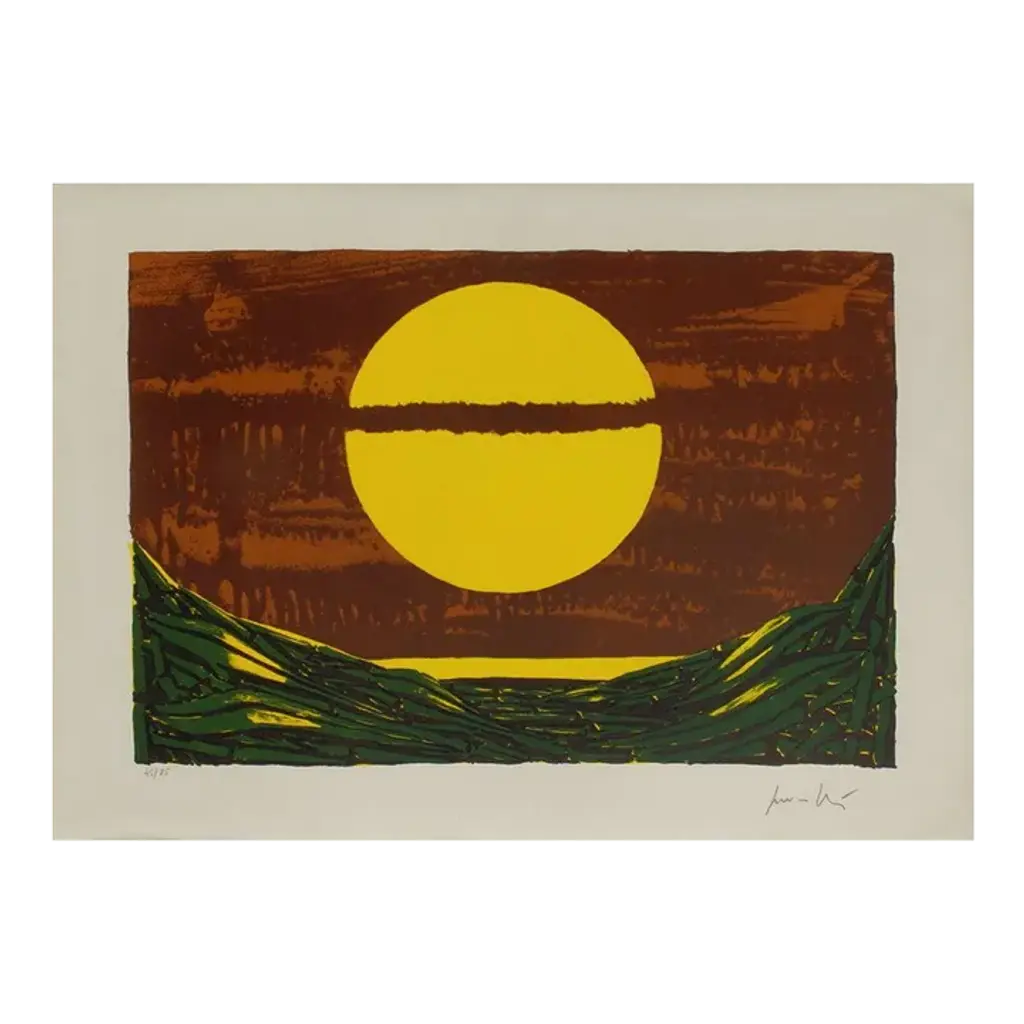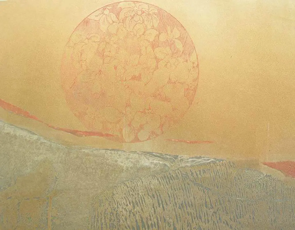 1970s "Mountain Meadow" Minimalist Landscape Signed And Numbered Etching By Lin Carte Anderson