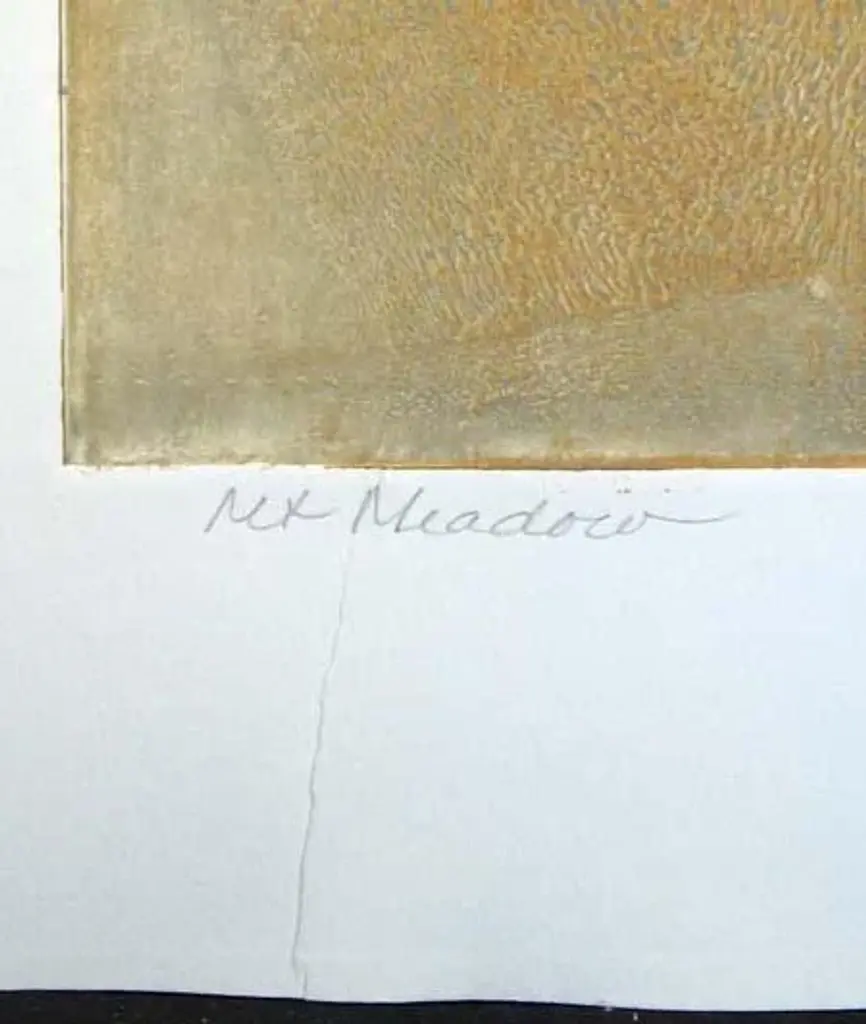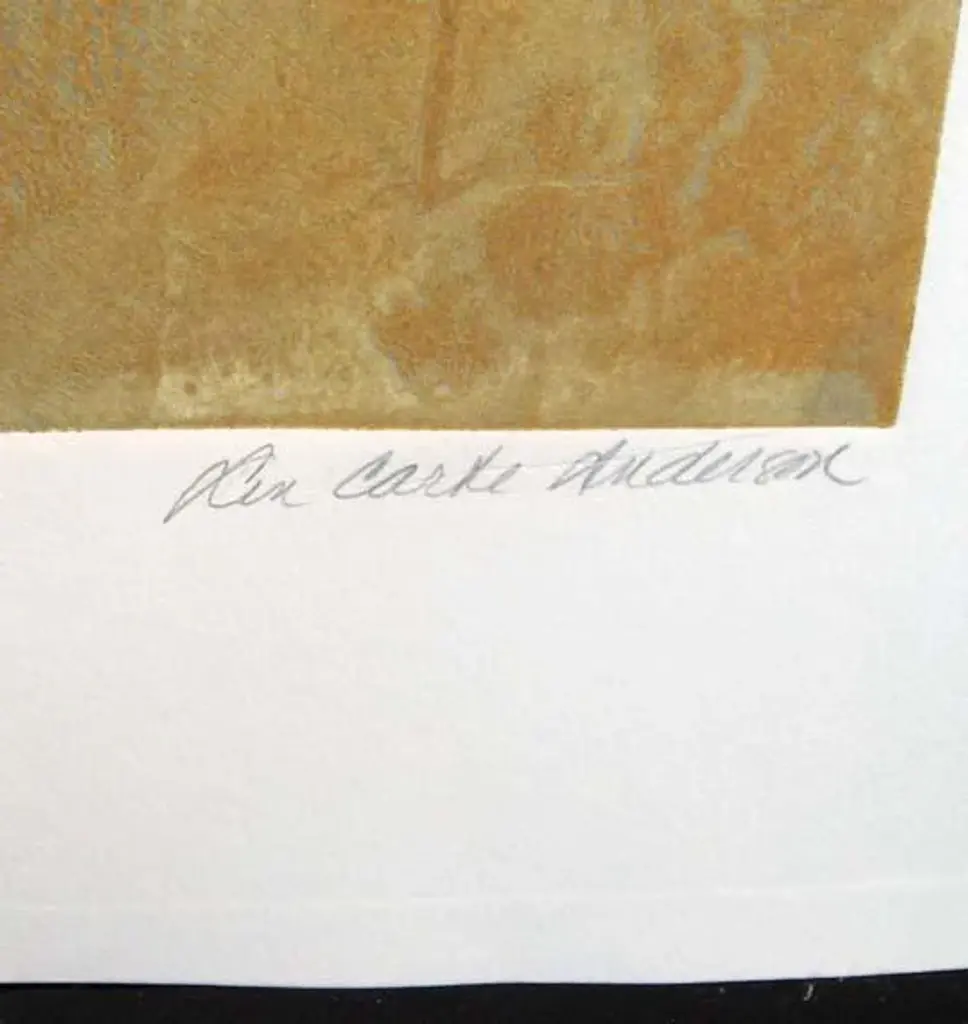 "Mountain Meadow" unframed Original Limited Edition Intaglio Etching by Lin Carte Anderson. Pencil signed, titled and numbered by the artist. Paper Size: 30" x 22", Image Size: 23.5" x 17.5". Edition Number: 9/175. Condition : Excellent. Crease by the title is from the print making process. Certificate of Authenticity is included. Make an offer! BIO: Lin Carte Anderson (this bio is several years old) Free-form images, irregular line, and subtle colors combine with the elements of nature in the intaglio etchings of Lin Carte Anderson. The results are intriguing juxtapositions. Lin's art awareness was largely developed by her parents while growing up in Philadelphia. She studied at the Moore College of Art in Philadelphia, and later transferred to Colorado State University in Fort Collins where she received a Bachelor's Degree in Art Education, Printmaking, and Psychology. Describing herself as a "displaced easterner", with strong affections for the ocean, Lin lives in Denver with her Coloradoan husband and their son. She taught printmaking and drawing at Colorado Women's College and prints at Atelier Intaglio, a women?s co-op studio on old South Gaylord in Denver. "I enjoy engraving", says Lin. "Very few people do. The results are like no other printmaking techniques." She continues: "My work is very personal, an extension of myself. It's an evolution; one piece triggers the idea for another. I just have to give myself time to integrate all of life's experiences."