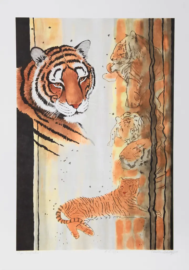 1970s "Tiger Composition" Lithograph By Caroline Schultz