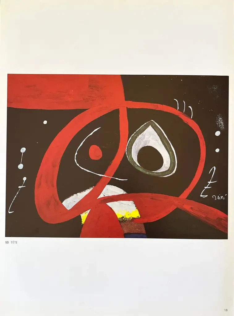 Title: Tete – DM13231 Artist: Joan Miro Country: Spain Medium: Offset Marks: Not signed, not numbered Paper Size: Vellum paper 15 x 11 inch Published: 1978 in France Provenance: Derriere le Miroir 1978 Condition: Very good Derrière le Miroir is a French art and literary magazine published from 1946 to 1982 to provide a forum for discussing and distributing original graphics. The lithographs in the magazine might have printing and text on the back. Joan Miro (1893-1983) was born in Barcelona, Spain. He was an artist and writer who moved to Paris in 1920. Throughout his career, Miro worked in tapestries, ceramics, sculptures, and abstract paintings and is recognized as a pioneer of Modernism.