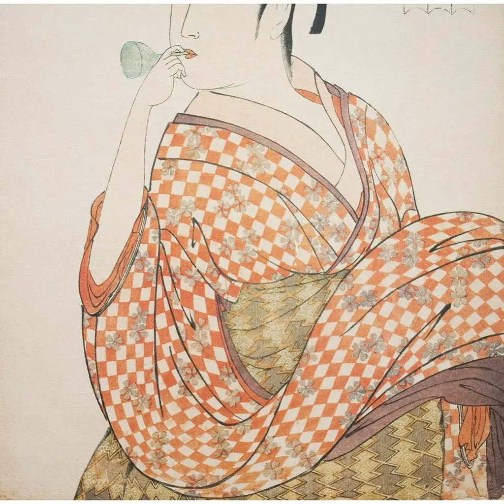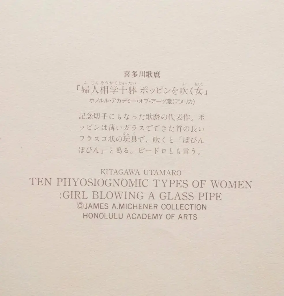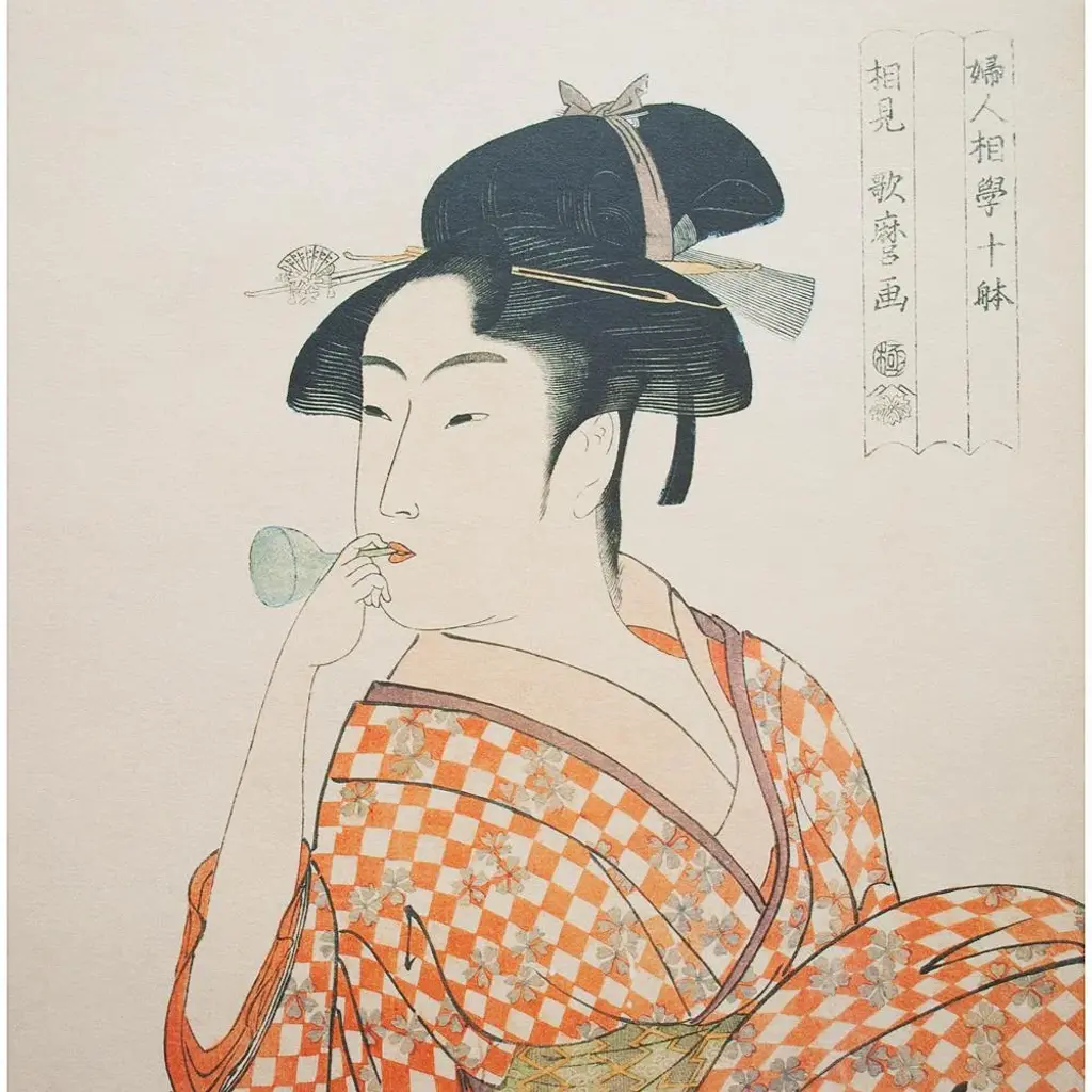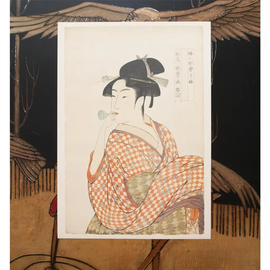1980s Kitagawa Utamaro "Girl With A Glass Pipe"