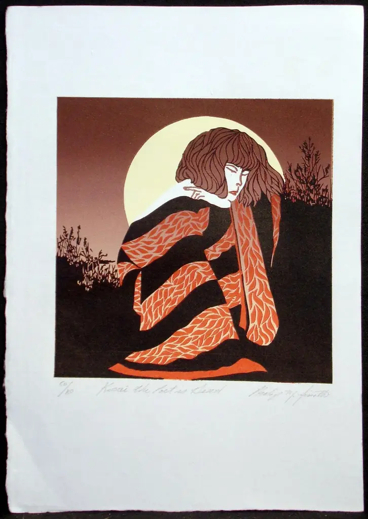 "Kosai The Poet Is Dead" Unframed woodcut engraving by Philip M. Smith. Excellent condition. Minor handling creases in the bottom left corner can be matted over when framing. Comes with CoA. Pencil signed, numbered and titled by the artist. Paper Size: 12" x 8-1/2" , Image Size: 7" x 6-3/4". Circa late 1970s. Edition Number: 50/80. Offers considered.