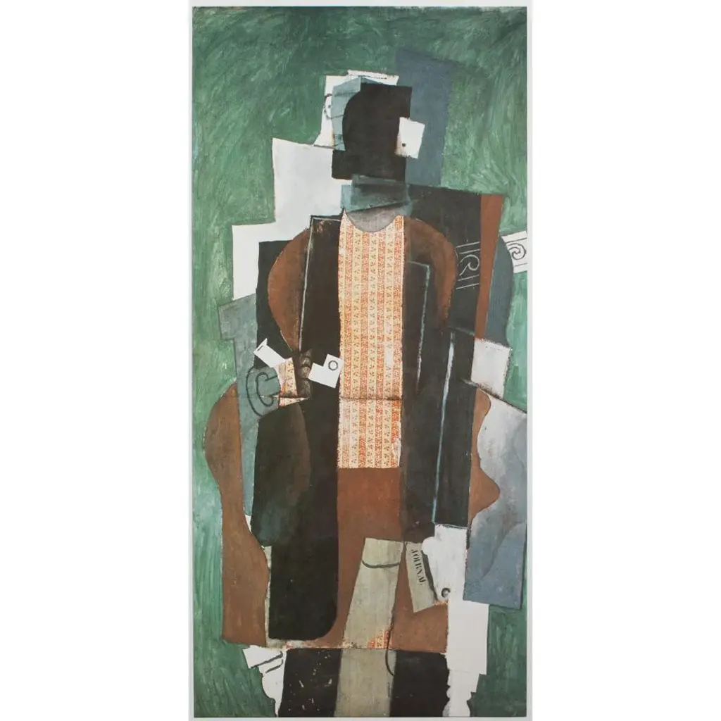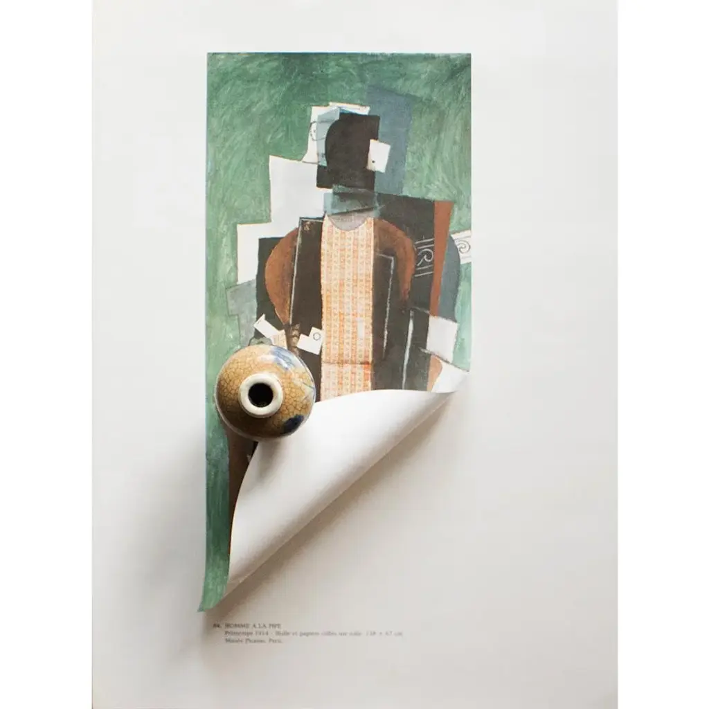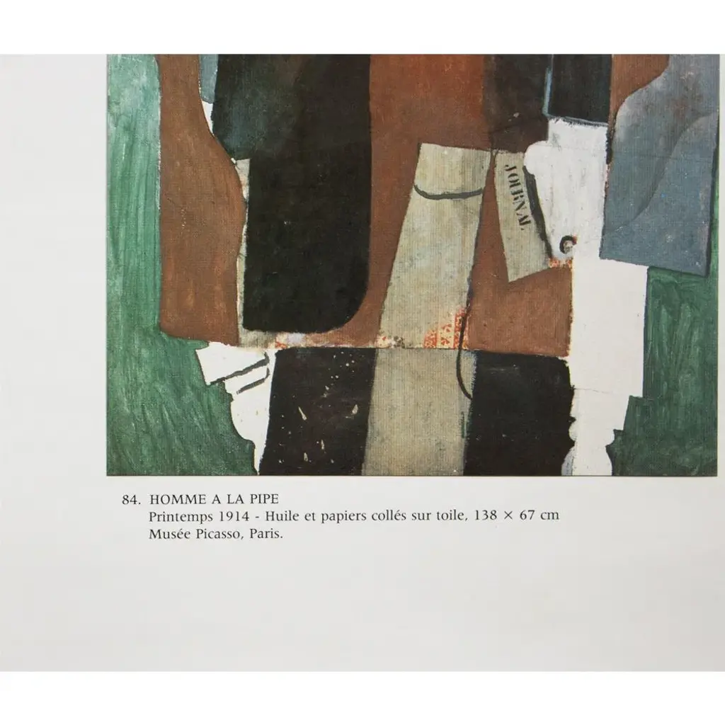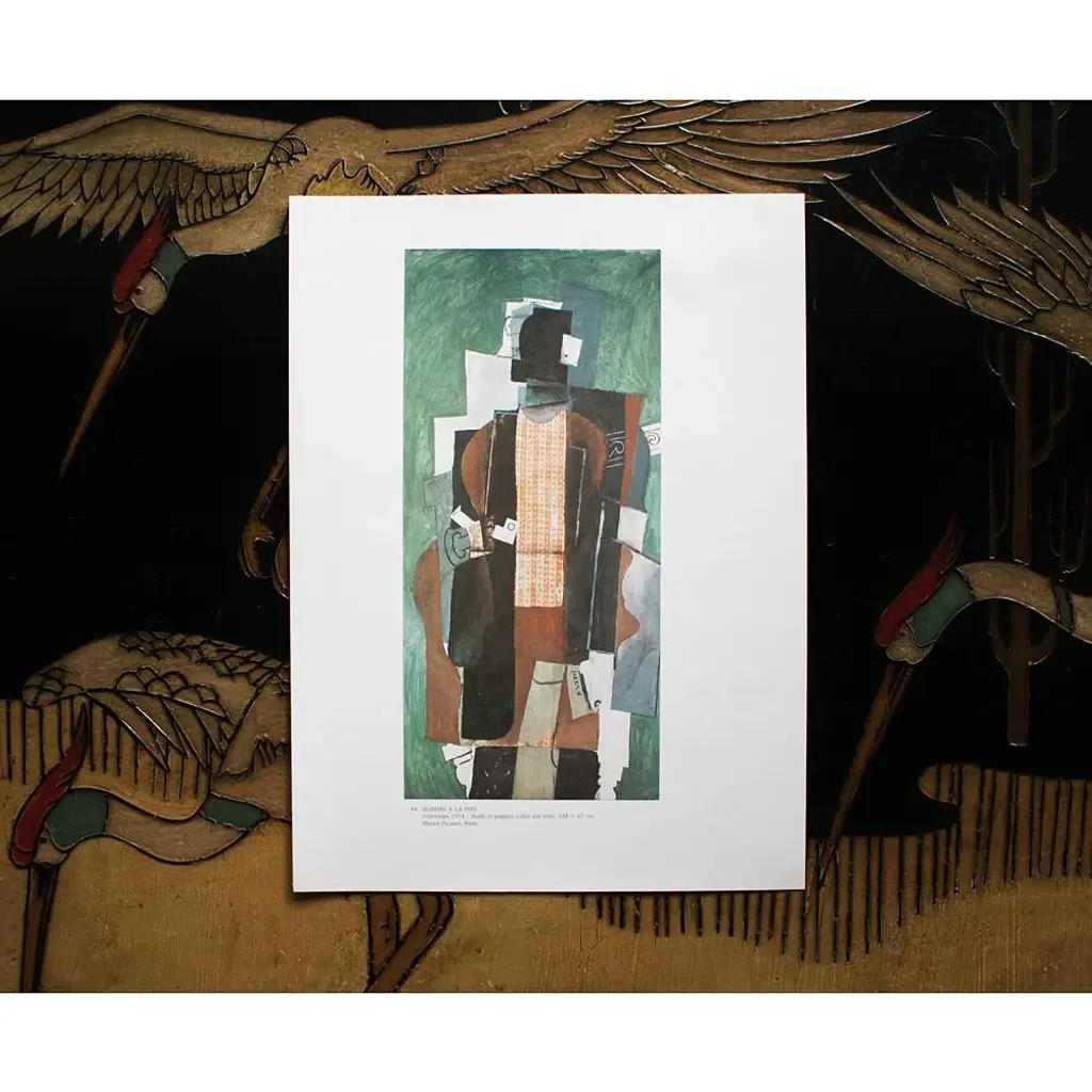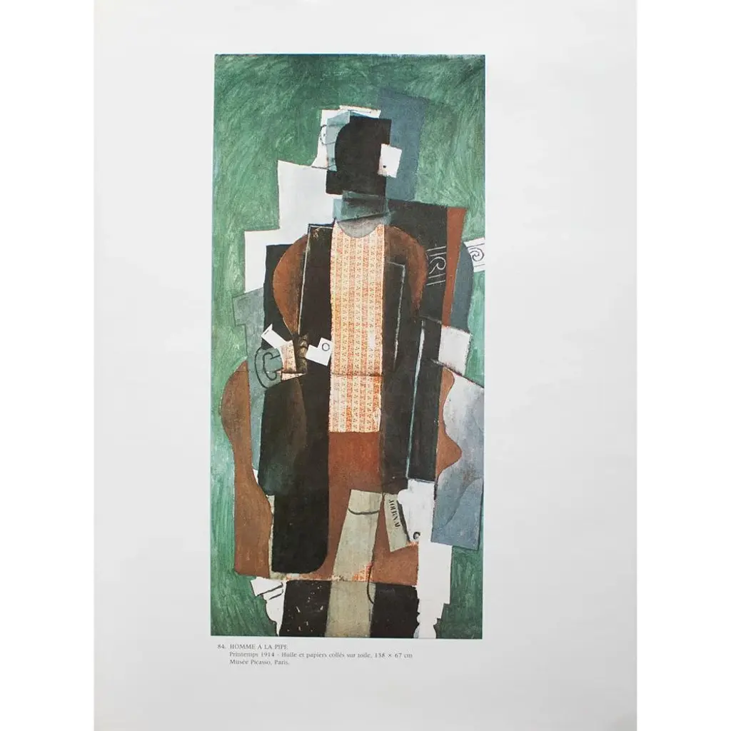 An excellent photogravure, full-color print, after painting Man With The Pipe (1914) by Pablo Picasso. Comes from an art folio published by New French Editions in Paris, France, in 1985. Printed on one side. Hand tipped-in on a board of heavy paper. Information regarding the original artwork is printed in French below the image. Copy by Georges Boudaille on the back of the board. Excellent condition - never framed. Image 4.65"W x 10.20"H