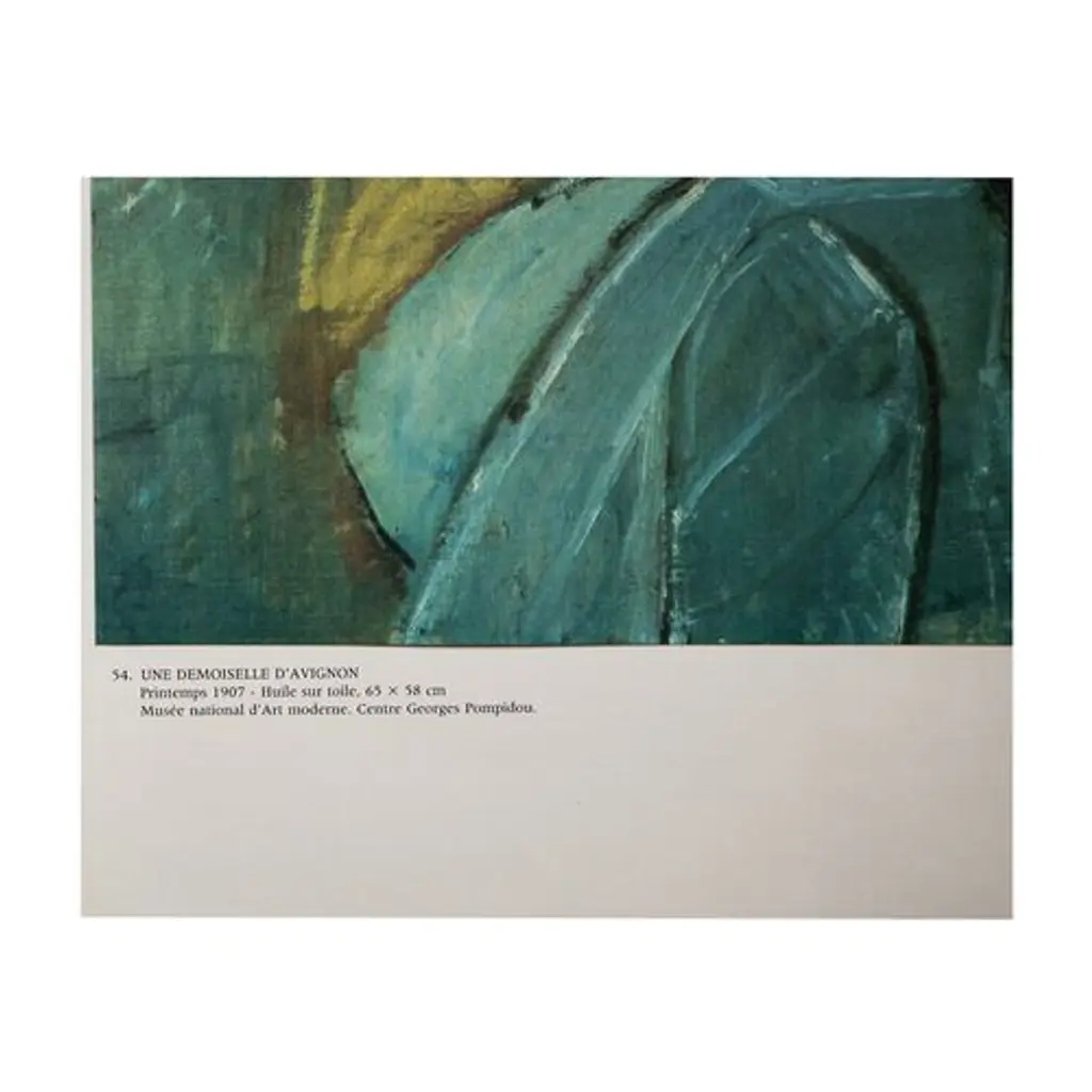 A rare original photogravure after painting A Demoiselle D'Avignon (1907) by Pablo Picasso. Comes from a rare folio of the artist published by New French Editions in France, in 1985. Printed on one side. Tipped-in on an insert of heavy paper, not a book page. Signed in the print: Picasso. Numbered. Information regarding the original artwork is printed in French below the image. Copy by Georges Boudaille on the back of the insert. Excellent condition - never framed. 8.60"W x 9.75"H Image