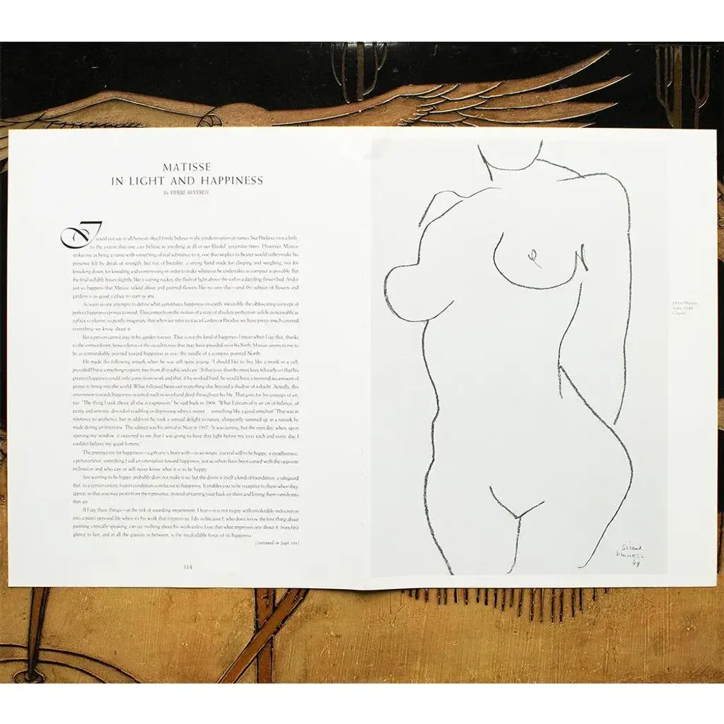 An excellent large a full-color print of color lithograph "Sorrow of the King" for Verve (Summer 1958) by Henri Matisse. This full-color print is second edition printed in Switzerland in 1987, in a rare art book dedicated to Verve. Superb quality. Detailed. Rich colors. Reproduction of black and white illustration of crayon drawing "Sirene" (1949) by Matisse from Verve and copy is printed on back. Good condition - fold through the center, never framed. Overall 20.75"W x 14"H Image 17.5"W x 13"H
