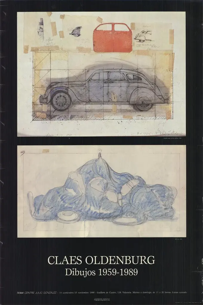 Artist: Claes Oldenburg Title: Drawings 1959-1989 Year: 1989 Signed: No Medium: Offset Lithograph Paper Size: 39.5 x 26 inches ( 100.33 x 66.04 cm ) Image Size: 39.5 x 26 inches ( 100.33 x 66.04 cm ) Edition Size: Unknown Framed: No Condition: B-: Good Condition, Signs of Handling and Age Additional Details: Poster for the exhibition: Claes Oldenberg- Drawings 1959-1989 held at Ivam Centre Julio Gonzales in 1989.