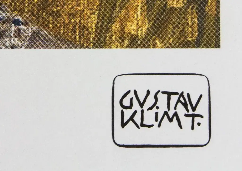 Gustav Klimt's "Portrait of Adele Bloch-Bauer" is a limited edition of 200, signed and numbered on fine art paper, with La TREC Spa embossing, and sold unframed, measuring 19.69" x 27.56".