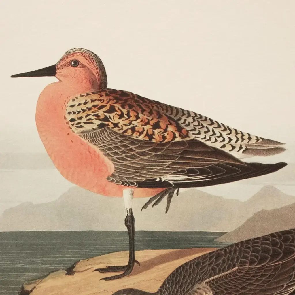 1990s Red-Breasted Sandpiper After Audubon, Large Cottage Style Print