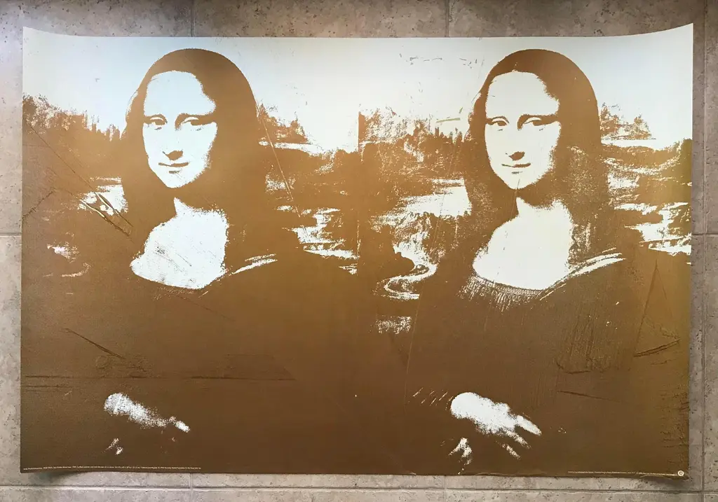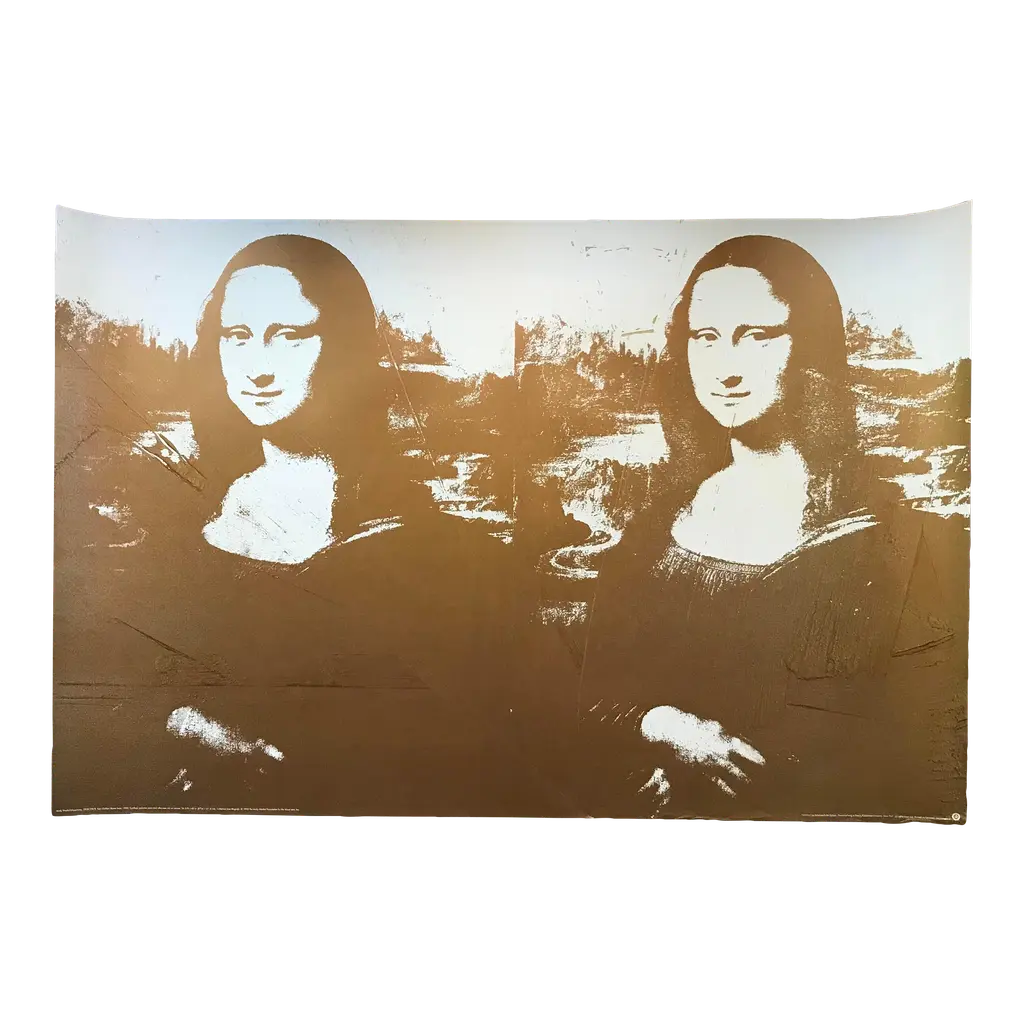 Warhol created several works featuring the Mona Lisa, including silkscreen prints in different colors. In these works, he often used vibrant, eye-catching colors to create a striking contrast with the original painting's muted tones. The images are typically cropped and repeated multiple times, creating a grid-like pattern that emphasizes the repetition and mass-produced nature of the image. Overall, Warhol's take on the Mona Lisa is a unique and colorful interpretation that reflects his signature style and approach to art. Andy Warhol Title - Two Golden Mona Lisa’s Year - 1980 Open Edition 1993 Andy Warhol Foundation Large Format Color Lithograph on heavy paper Unframed - never framed Sheet Size - 33.85” x 51.2” Style - Pop Art, Modern Condition - Very Good, clean, as new Provenance - United States