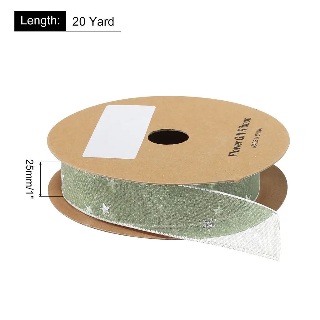 1Inch 20 Yard Star Organza Sheer Ribbon Printed Grey For Gift Wrapping - Green - 1.6 Inch