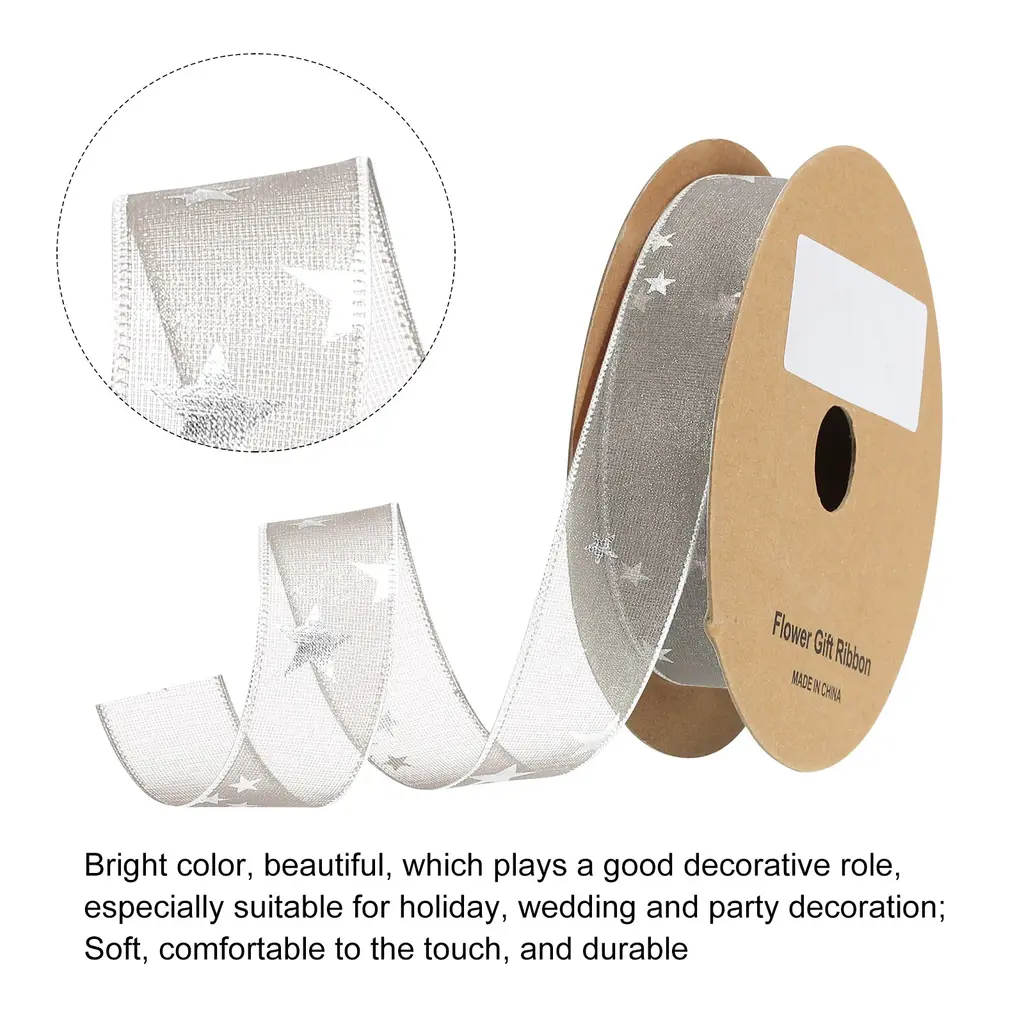 Add a touch of elegance to your gift wrapping with our 1 Inch 20 Yard Star Organza Sheer Ribbon in printed grey. This bright colored ribbon is perfect for DIY crafts, holiday decorations, and wedding embellishments. The soft and durable material ensures a comfortable and long-lasting use. Get creative and make beautiful bows or use it to add a decorative touch to floral arrangements and scrapbooking projects. The star pattern adds a playful element, making it ideal for Christmas, Halloween, Thanksgiving, and more.Features: