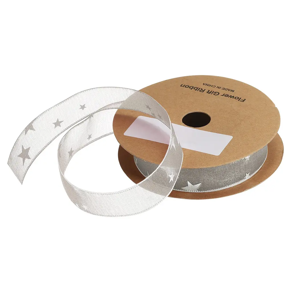 1Inch 20 Yard Star Organza Sheer Ribbon Printed Grey For Gift Wrapping - Grey - 1 Inch