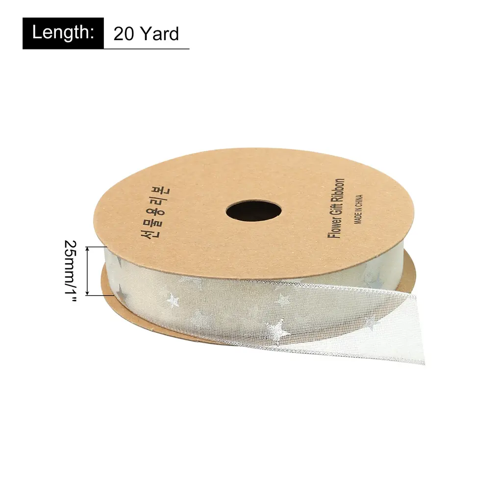 Add a touch of elegance to your gift wrapping with our 1 Inch 20 Yard Star Organza Sheer Ribbon in printed grey. This bright colored ribbon is perfect for DIY crafts, holiday decorations, and wedding embellishments. The soft and durable material ensures a comfortable and long-lasting use. Get creative and make beautiful bows or use it to add a decorative touch to floral arrangements and scrapbooking projects. The star pattern adds a playful element, making it ideal for Christmas, Halloween, Thanksgiving, and more.Features: