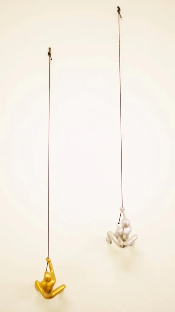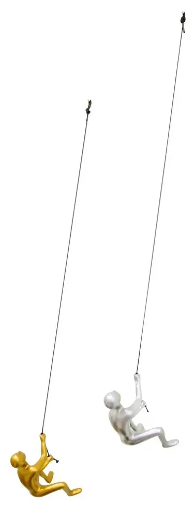 this is a 2 pc set of the climbing man wall art home decor in gold + silver color USA seller! New 1 x gold + silver color , climbing man wall art home decor sculpture!6h-3w-3d! This is a beautiful high end wall art for your home decor. Climbing man wall art made out of solid resin material. Make your house decor stand out of the ordinary with these amazing climbing wall man. Size is of the climbing man is 6h - 3w - 3h! Beautiful! One wall-mount sculpture of a man climbing a rope for distinctive decor accent Crafted from resin in gold + silver color Comes with a twisted loop knot for easy installation Looks great hung by itself or grouped in multiples at various heights This unique resin wall sculpture creates the illusion of a man climbing up whatever surface he is hung on. This work of art is carefully crafted and features a knotted loop at the top to allow for hanging . This work of art can be featured on its own or with a collection of climbing men creating a large wall sculpture. 1pc. All the same style. Black cord included + black hanging pin