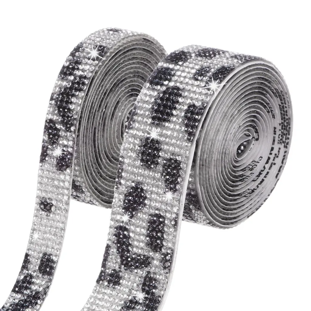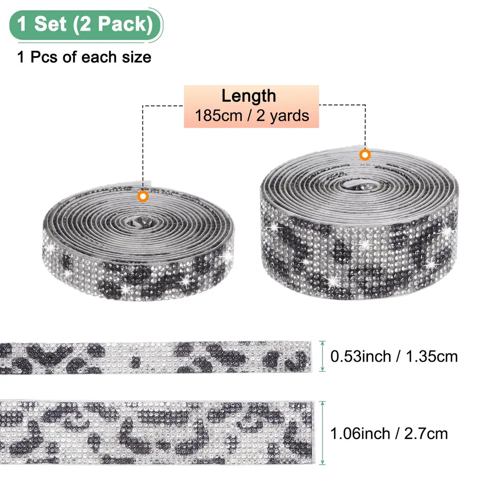 2-Roll Crystal Rhinestone Ribbon, 0.5/1.1 Inch X 2 Yards Leopard Print - Gray