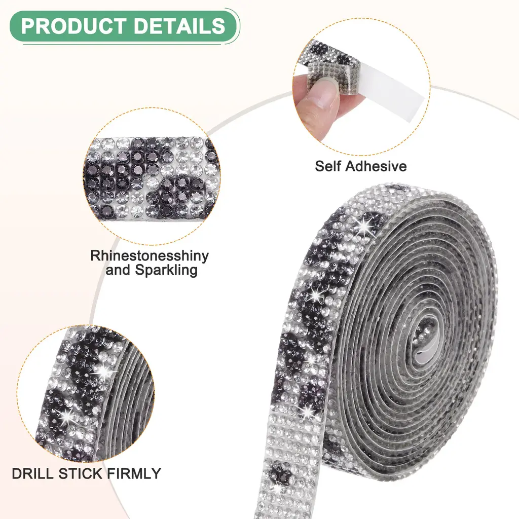 PRODUCT APPLICATIONSOur rhinestone ribbons have various applications. They can be used for various craft projects such as creating hair accessories, wreaths, vases, picture frames, candle holder decorations, and more. It can also be used for weddings, Christmas, birthdays, and dates, you can also use it for DIY decorative necklaces, bracelets, hair accessories, bridal belts, or for bouquets and rhinestone trim for furniture.PRODUCT DETAILS & INCLUDE√ Material: Rhinestone√ Color: Brown Leopard Print√ Overall Size: Length:185cm/2 yards x 1 cm/0.39 Inch;Width:1.35cm/0.53 Inch;2.7cm/1.06 Inch;√ Package Inclue:2 Rolls x Self Adhesive Rhinestone Chain Ribbon in different sizesPRODUCT ADVANTAGES1. The rhinestone material of this ribbon adorned with glitters is durable and sturdiness, flexible, and sparkle, ensuring a comfortable and pleasant feel when handling or wearing it.2. Our crystal rhinestone diamond ribbon can be reused, sturdy not easy to break, deform, or bend, and will not fall off the string. And DIY self-adhesive for easy decoration.INSTALLATION1. Clean the items' surfaces;2. Cut out the desired length according to your needs;3. Tear off the sticker from the back;4. Place it on a smooth surface to decorate, the press