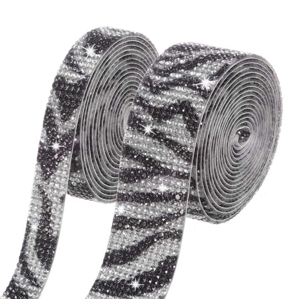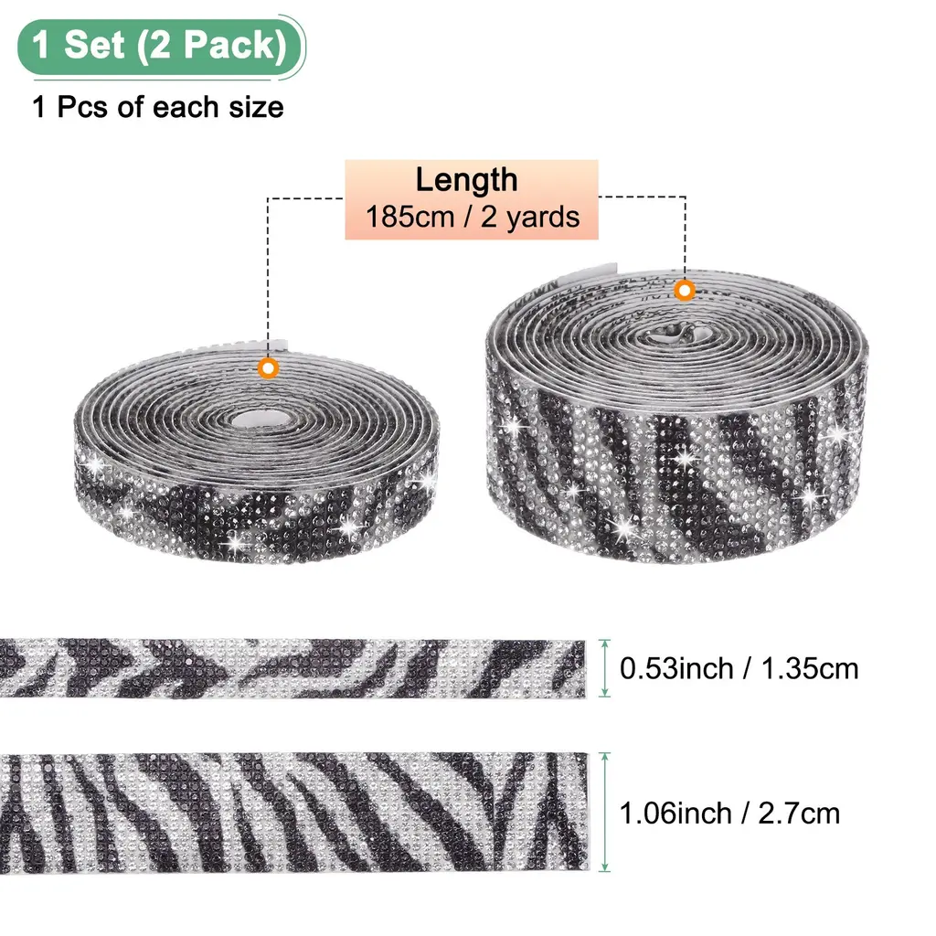 2-Roll Crystal Rhinestone Ribbon,0.5/1.1 Inch X 2 Yards For Diy Zebra Print - Spray Color Zebra Print - Spray Color Zebra Print
