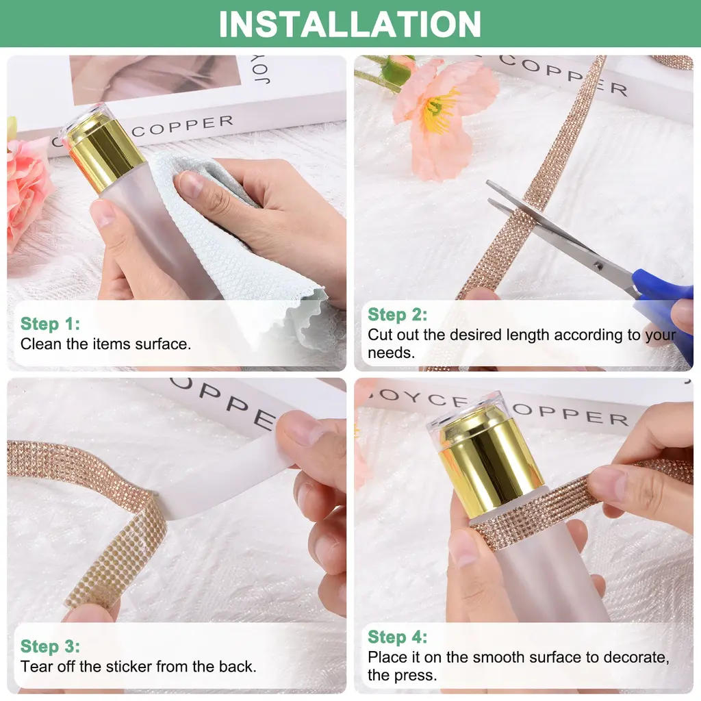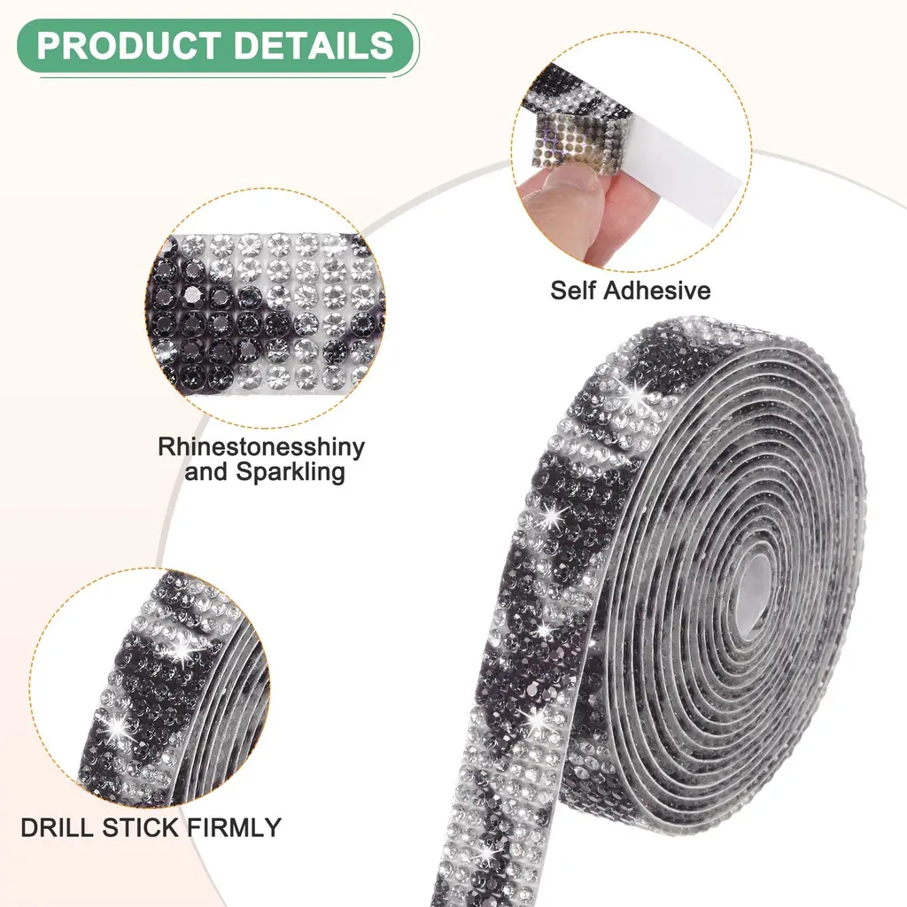 PRODUCT APPLICATIONSOur rhinestone ribbons have various applications. They can be used for various craft projects such as creating hair accessories, wreaths, vases, picture frames, candle holder decorations, and more. It can also be used for weddings, Christmas, birthdays, and dates, you can also use it for DIY decorative necklaces, bracelets, hair accessories, bridal belts, or for bouquets and rhinestone trim for furniture.PRODUCT DETAILS & INCLUDE√ Material: Rhinestone√ Color: Spray Color Zebra Print√ Overall Size: Length:185cm/2 yards x 1 cm/0.39 Inch;Width:1.35cm/0.53 Inch;2.7cm/1.06 Inch;√ Package Inclue:2 Rolls x Self Adhesive Rhinestone Chain Ribbon in different sizesPRODUCT ADVANTAGES1. The rhinestone material of this ribbon adorned with glitters is durable and sturdiness, flexible, and sparkle, ensuring a comfortable and pleasant feel when handling or wearing it.2. Our crystal rhinestone diamond ribbon can be reused, sturdy not easy to break, deform, or bend, and will not fall off the string. And DIY self-adhesive for easy decoration.INSTALLATION1. Clean the items' surfaces;2. Cut out the desired length according to your needs;3. Tear off the sticker from the back;4. Place it on a smooth surface to decorate, the press