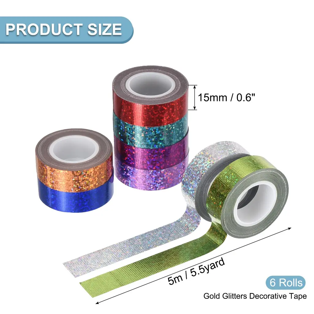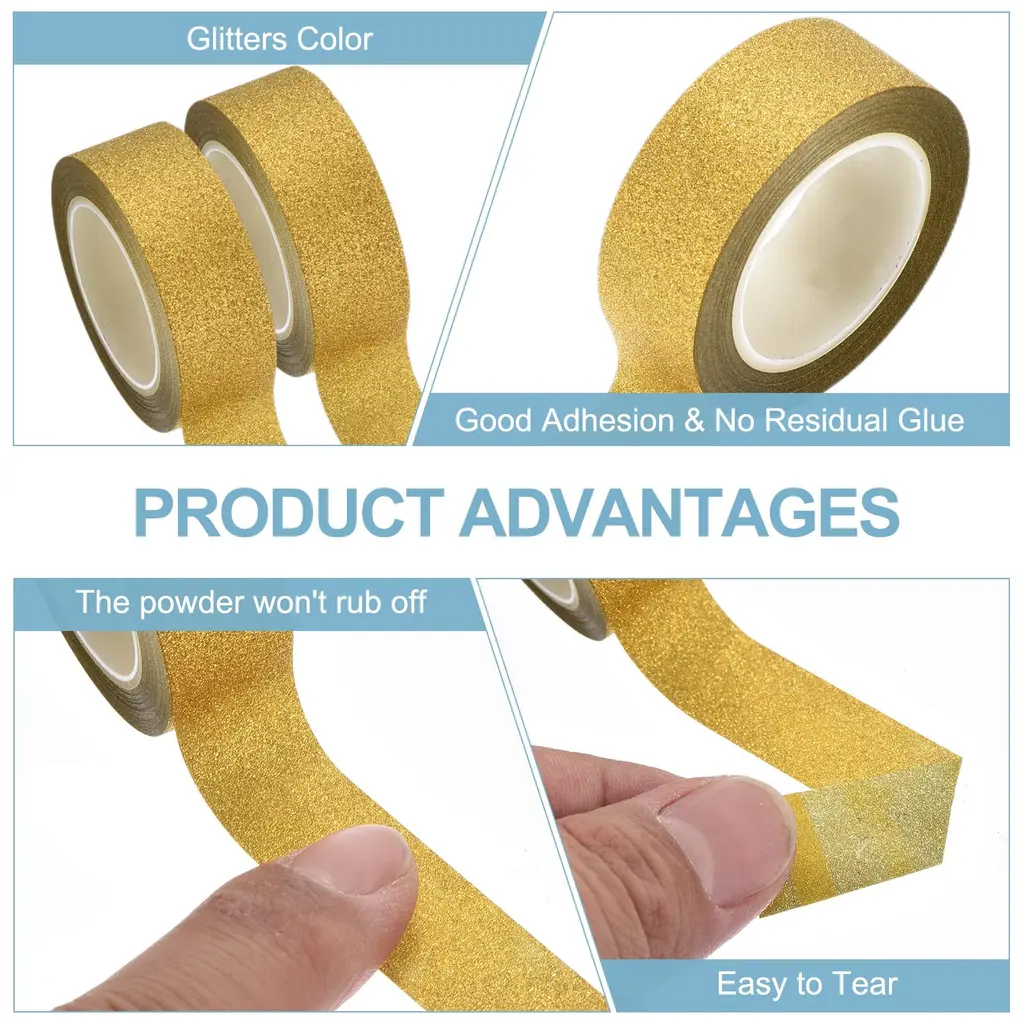 Description:Durable Material: The colored masking tape is made of good-quality cloth base and washi material, which is durable and sturdy with good adhesion and no residual glue.Sparkle Effect: This decorative tape features vibrant colors, and the glitters on the washi tape are beautiful and will not fall off easily.Easy to Use: Make sure the surface is clean and dry, then peel off the desired length of the adhesive tape and place it to add beauty and appeal to the items.Wide Application: These colorful decoration tapes are great for various DIY projects such as handmade cards, journaling, book covers, and more. They are also suitable for home decoration such as wall decoration and furniture embellishment. And perfect for gift wrapping for various holidays and occasions, adding uniqueness and beauty to your gifts.Specification:Package Includes: 2 Rolls x Sparkle Washi TapesColor: GoldMaterial: WashiLength: 10m/11 yardWidth: 15mm/0.6 inch