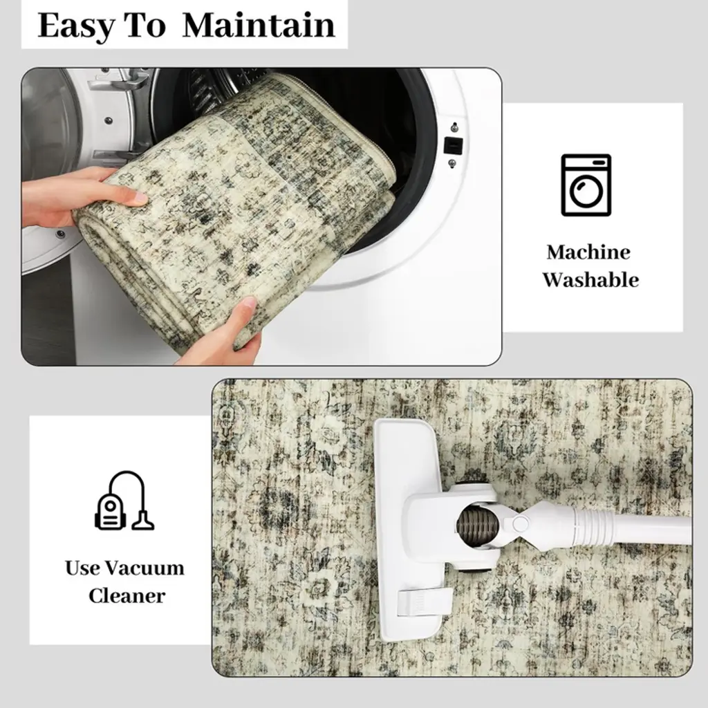 This rug has simple care methods like hosing or machine washing, preserved through regular vacuuming works or mild detergent to ensure it maintain vibrant and tidy.Wide Applications: This rug can be used in places such as kitchens, bedrooms, hallways, living rooms, dining rooms, entryways, etc.Durable Edges: This rug with durable edges can prolong its service time and be kept simply.Not Hide Dirt: The rug with low pair height provides a clean and safe environment, the hidden dirt in this rug can be found and cleaned simply.Exquisite Design: With unique flower pattern, this -style carpet relaxes human and brings a sense of beauty to one's enjoyment during use.