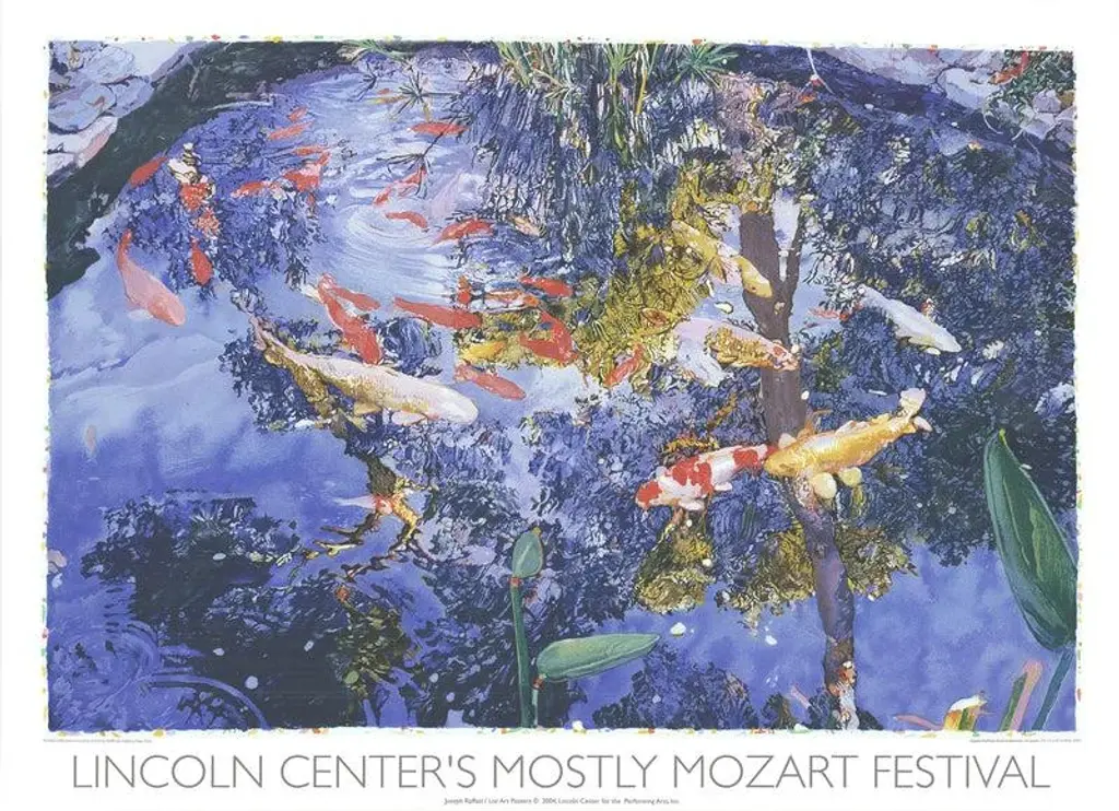 Artist: Joseph Raffael Title: Pond with Goldfish Year: 2004 Signed: No Medium: Serigraph Paper Size: 33.25 x 45.75 inches ( 84.455 x 116.205 cm ) Image Size: 28.5 x 42.5 inches ( 72.39 x 107.95 cm ) Edition Size: 500 Framed: No Condition: A: Mint Additional Details: Published by the Lincoln Center for the Mostly Mozart Festival in 2004.