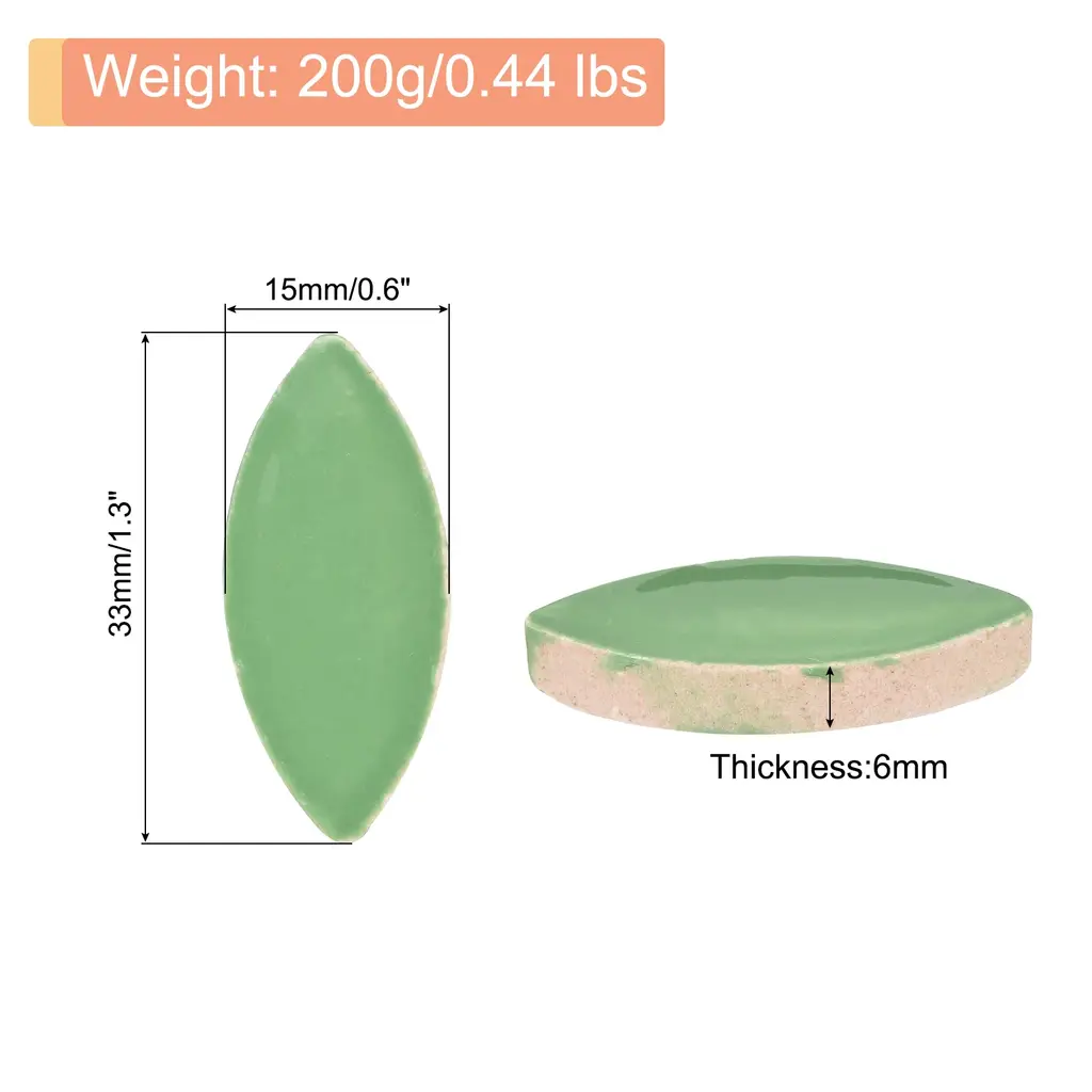 What is this?This product is a set of glazed mosaic tiles made of ceramic. These tiles have a smooth surface and come in vibrant colors, making them perfect for various craft projects. DIY mosaic Christmas arts and crafts, creating coasters, ceramic artwork, or outdoor decorations like mosaic stepping stones.What will I get?In the package of: 1 Set ceramic mosaic tiles,200g/Set, totally 200g( 0.44lbs)Material: Ceramic;Color: White;Shape: Flower;Size: 33 x 15mm / 1.3inch x 0.6inch(LxW)Thickness: 6mm;Finish Type: PolishedAre there any advantages of the product?The ceramic mosaic tile is made of premium-quality ceramic, ensuring durability and longevity. The smooth surface allows for easy application and provides a polished finish to your crafts and also makes them easy to clean and maintain, while their resistance to fading and moisture-proof makes them cost-effective and durable.How to use it?Prepare the surface by ensuring it's clean, dry, and flat. Apply suitable adhesive and press the mosaic tiles firmly in place. Leave the adhesive to dry for 24 hours before grouting the mosaic tiles. Finally, clean off any excess grout with a damp sponge.What should I notice?Handle the ceramic mosaic tiles with care to avoid any breakage from edges. Use adhesive suitable for ceramic materials to secure the tiles onto the desired surface. Consider grouting the gaps between tiles for a more finished and professional appearance.