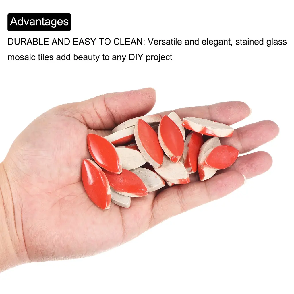 200g Ceramic Mosaic Tiles For Crafts Bulk, Flower Ceramic Tiles - Red