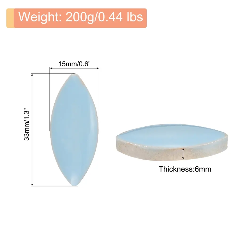 What is this?This product is a set of glazed mosaic tiles made of ceramic. These tiles have a smooth surface and come in vibrant colors, making them perfect for various craft projects. DIY mosaic Christmas arts and crafts, creating coasters, ceramic artwork, or outdoor decorations like mosaic stepping stones.What will I get?In the package of: 1 Set ceramic mosaic tiles,200g/Set, totally 200g( 0.44lbs)Material: Ceramic;Color: White;Shape: Flower;Size: 33 x 15mm / 1.3inch x 0.6inch(LxW)Thickness: 6mm;Finish Type: PolishedAre there any advantages of the product?The ceramic mosaic tile is made of premium-quality ceramic, ensuring durability and longevity. The smooth surface allows for easy application and provides a polished finish to your crafts and also makes them easy to clean and maintain, while their resistance to fading and moisture-proof makes them cost-effective and durable.How to use it?Prepare the surface by ensuring it's clean, dry, and flat. Apply suitable adhesive and press the mosaic tiles firmly in place. Leave the adhesive to dry for 24 hours before grouting the mosaic tiles. Finally, clean off any excess grout with a damp sponge.What should I notice?Handle the ceramic mosaic tiles with care to avoid any breakage from edges. Use adhesive suitable for ceramic materials to secure the tiles onto the desired surface. Consider grouting the gaps between tiles for a more finished and professional appearance.