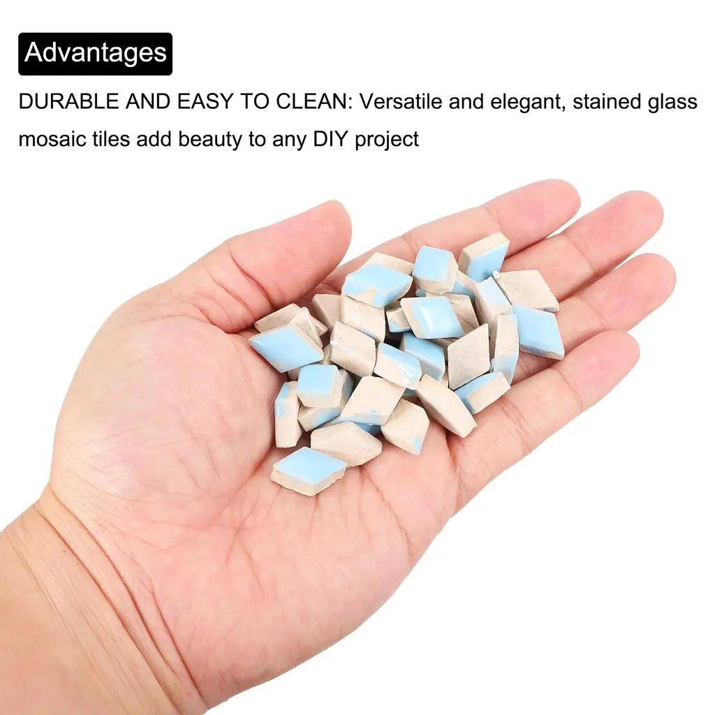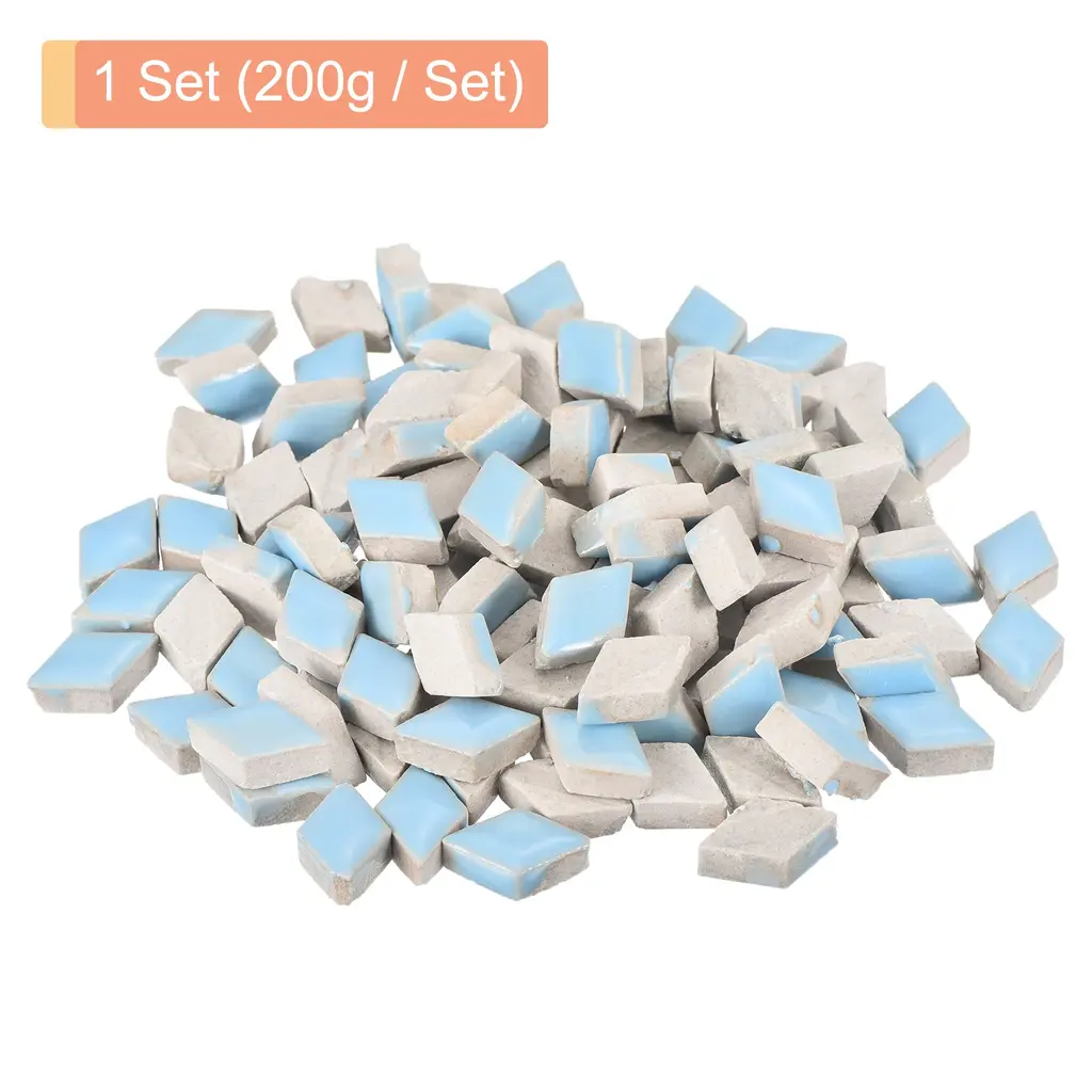 What is this?This product is a set of glazed mosaic tiles made of ceramic. These tiles have a smooth surface and come in vibrant colors, making them perfect for various craft projects. DIY mosaic Christmas arts and crafts, creating coasters, ceramic artwork, or outdoor decorations like mosaic stepping stones.What will I get?In the package of: 1 Set ceramic mosaic tiles,200g/Set, totally 200g( 0.44lbs)Material: Ceramic;Color: White;Shape: Rhombic;Size: 19 x 12mm / 0.7inch x 0.5inch(LxW)Thickness: 6mm;Finish Type: PolishedAre there any advantages of the product?The ceramic mosaic tile is made of premium-quality ceramic, ensuring durability and longevity. The smooth surface allows for easy application and provides a polished finish to your crafts and also makes them easy to clean and maintain, while their resistance to fading and moisture-proof makes them cost-effective and durable.How to use it?Prepare the surface by ensuring it's clean, dry, and flat. Apply suitable adhesive and press the mosaic tiles firmly in place. Leave the adhesive to dry for 24 hours before grouting the mosaic tiles. Finally, clean off any excess grout with a damp sponge.What should I notice?Handle the ceramic mosaic tiles with care to avoid any breakage from edges. Use adhesive suitable for ceramic materials to secure the tiles onto the desired surface. Consider grouting the gaps between tiles for a more finished and professional appearance.