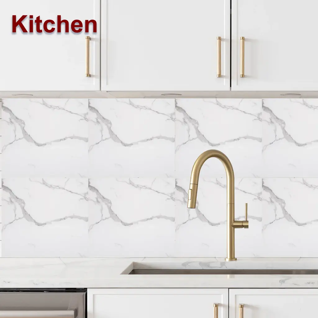 Made from a durable PVC+XPE composite, this peel-and-stick tile backsplash is not only waterproof and moisture-resistant but also exceptionally durable. Good for kitchens and bathrooms, it retains its aesthetic appeal over time, providing a long-lasting and stylish decor solution.Minimal maintenance, effortlessly maintain a fresh appearance, simply wipe clean the peel and stick marble wall panels with a damp cloth to keep these tiles looking great, making them practical for busy households. Elevate the look of your home with a refined, elegant marble aesthetic.Peel and stick marble wall tiles are multi-functional and can be easily applied to enhance the aesthetic of various surfaces in kitchens, bathrooms, and living areas, offering a quick and stylish upgrade without the need for extensive renovation.These peel and stick shower wall backsplash tiles feature a self-adhesive backing for easy, hassle-free installation. Just peel off the backing and stick the tiles to any clean, dry surface—no grout or special tools required. Great for quick and effortless updates to your space.