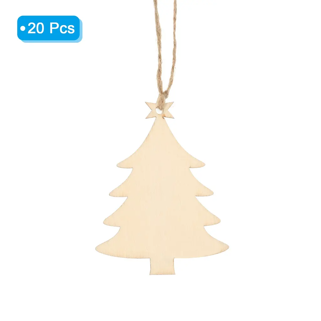 20pcs Tree Shape Wooden Hanging Embellishments Ornament With Twine For Diy Decor - Brown