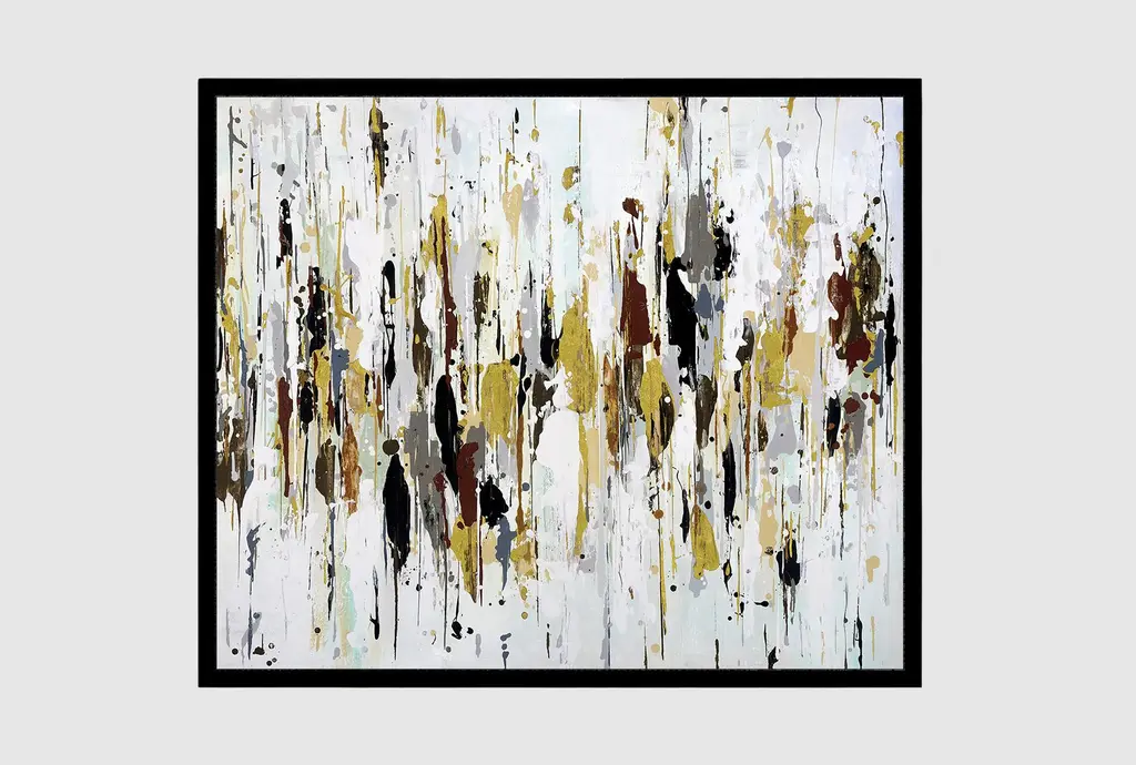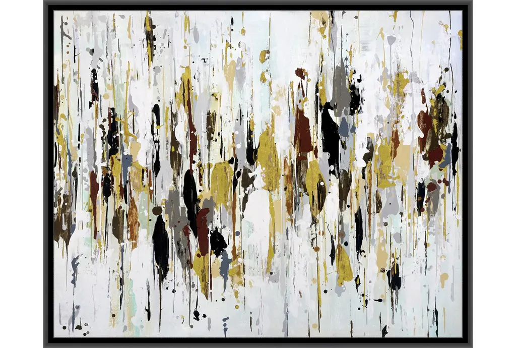 Enhance your space with the striking 20"X24" Multicolor Modern Abstract with Gold Frame. This horizontal framed canvas art combines vibrant colors and nonrepresentational design to create a captivating focal point for any room. The gold frame adds a touch of sophistication to the overall piece.
