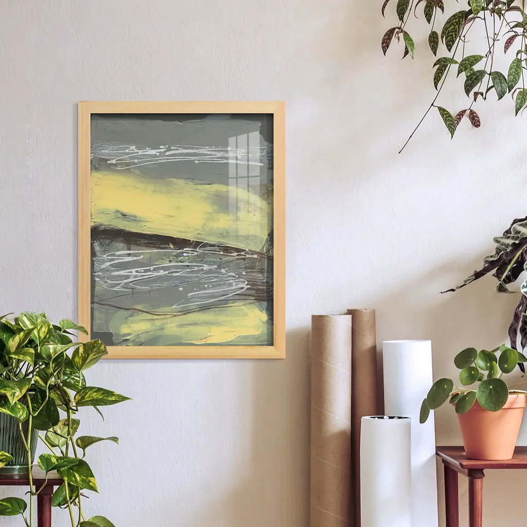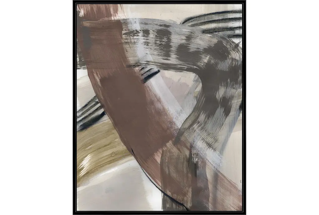Enhance your living space with the 20X24 Paint Play Terracotta II With Grey Frame. This abstract framed art piece offers a modern touch with its blend of grey, natural, and black colors. Proudly made in the USA, it features a vertical orientation perfect for adding height to your walls.