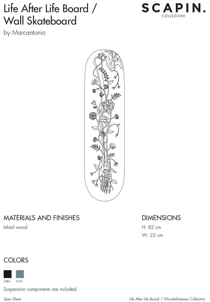 Life After Life BoardOld Skull Board/ Life After Life Board è una tavola da skateboard decorativa,disponibile in due varianti colore e con un disegno intarsiato simbolo della continuitàdella vita dopo la morte.Old Skull Board/Life After Life Board is a wall decorative skateboard , available in twocolors and with an inlaid draw symbol of continuity of life after death.