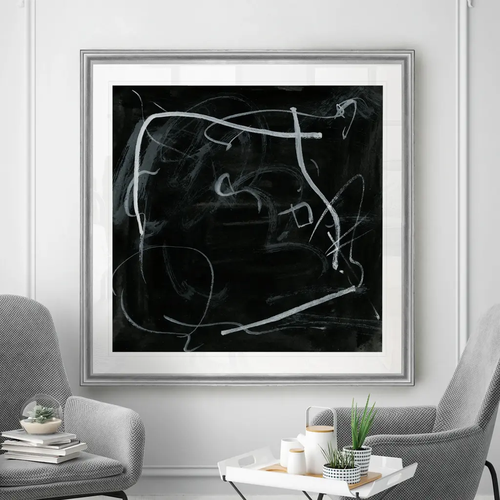 22x22 Scribble Scrabble I With Black Frame | Framed Art | Abstract | Print