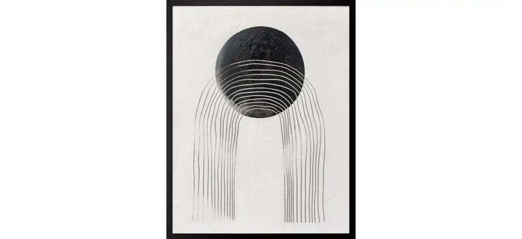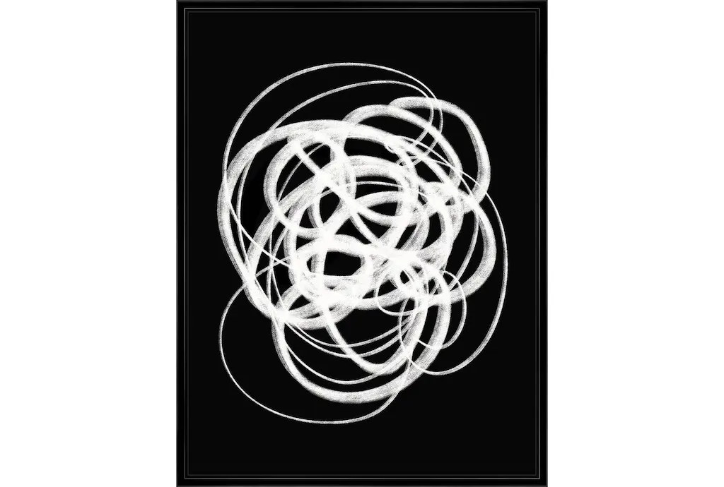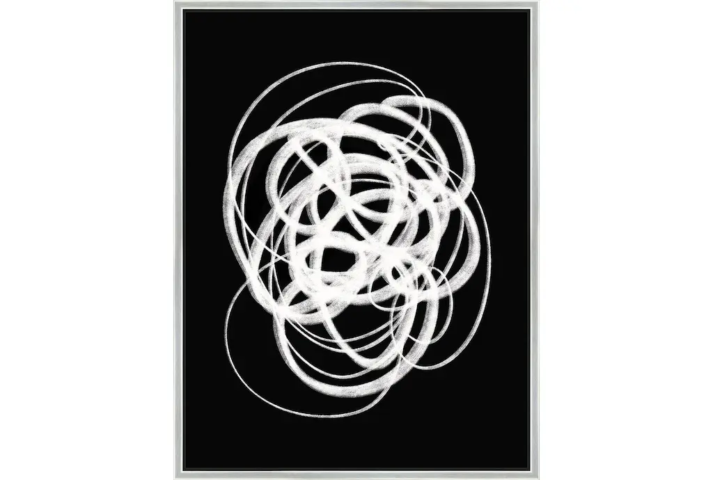 Enhance your office space with the 22X26 B&W Circles Rectangle framed art. This modern abstract print features striking black and white circles, creating a captivating visual impact. Perfectly framed in silver, this piece adds a contemporary touch to any room.