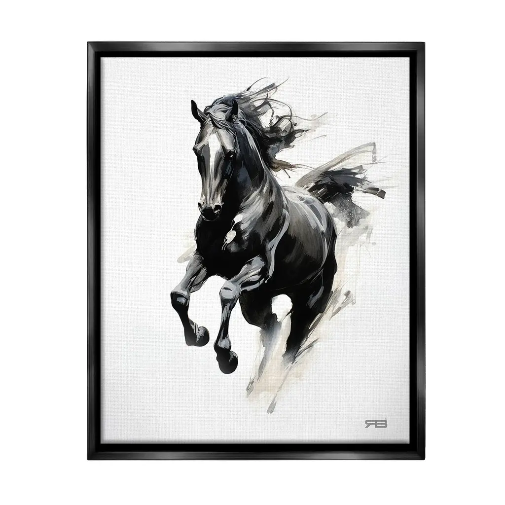 22x26 B&w Strong Stallion With Bronze Gold Frame | Vertical | Made In The Usa | Framed Art | Animals | Print