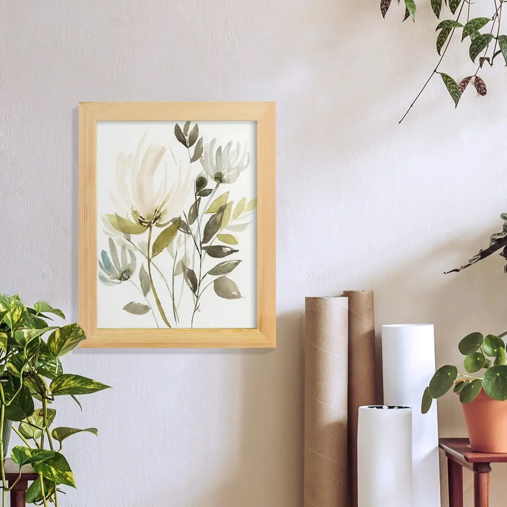 22x26 Botanical Watercolor With Birch Frame | Vertical | Made In The Usa | Framed Art | Print