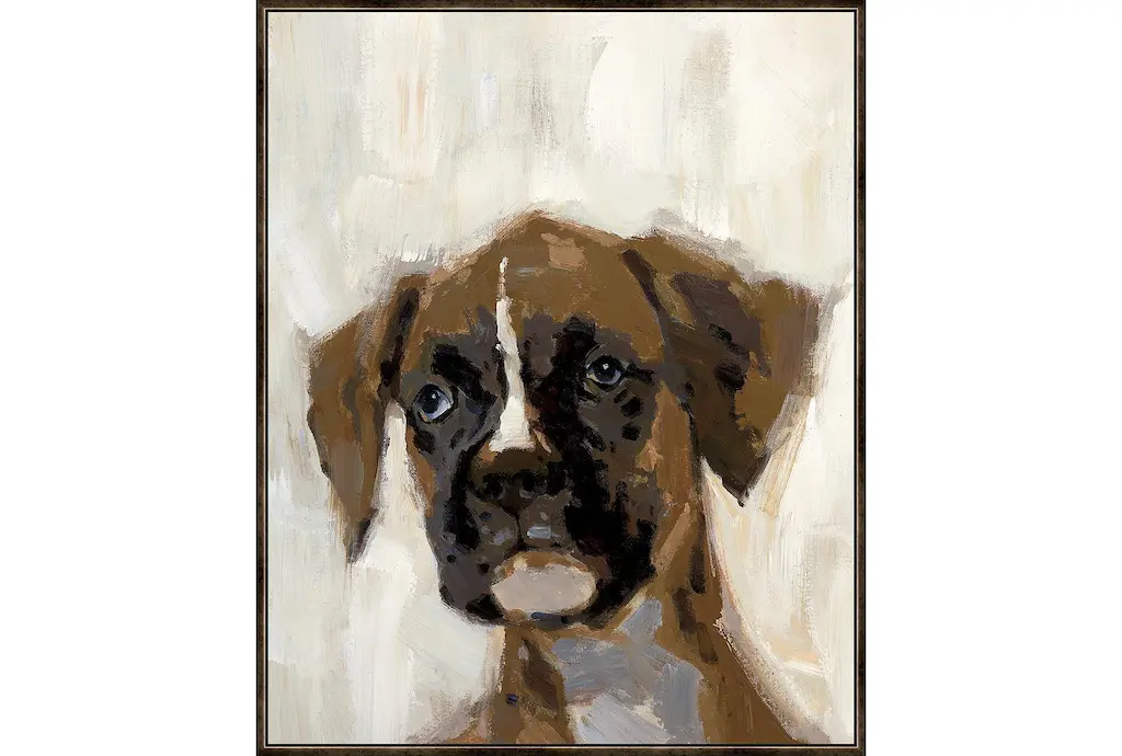 Bring a rustic charm to your space with the 22X26 Boxer With Espresso Frame. This vertical framed canvas art, made in the USA, features a beautiful animal print that adds a touch of nature to any room. Perfect for kids' rooms, this rectangle art piece showcases a blend of brown and black hues that complement a variety of decor styles.