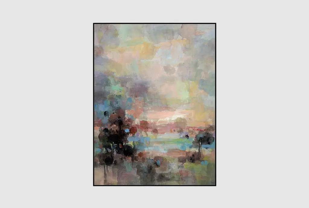 Introduce a touch of modern sophistication to your office with the 22x26 Colors of Dusk II with Champagne Frame. This vertical framed art print, made in the USA, features a stunning abstract design that captures the essence of natural landscapes in a vibrant array of colors.